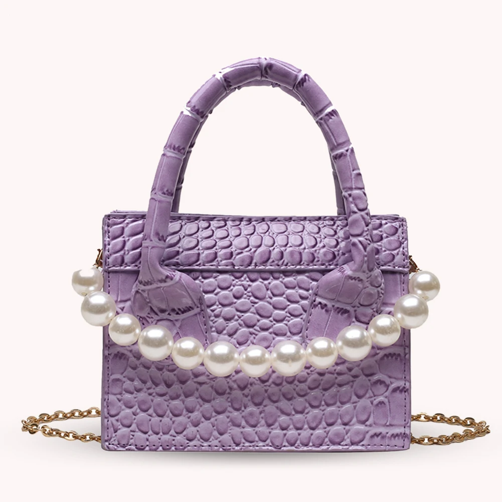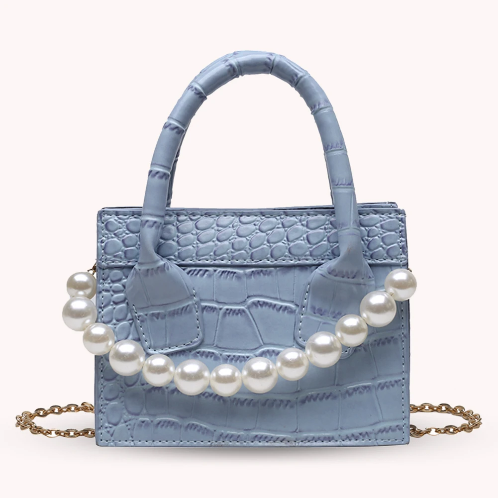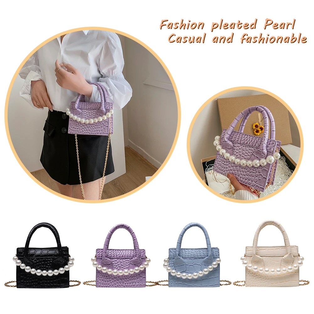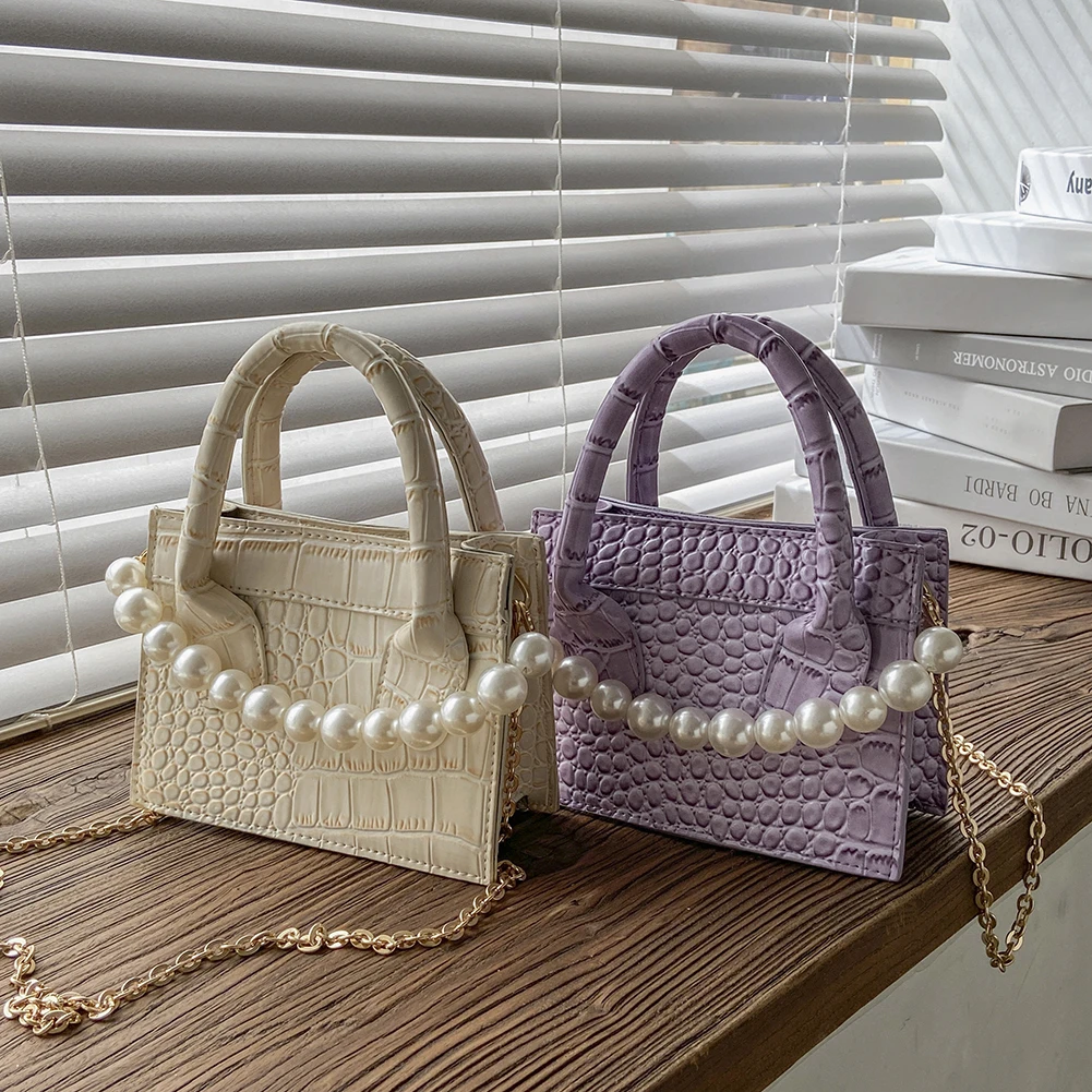 Модная женская сумка-мессенджер из искусственной кожи с узором аллигатора, однотонная сумка через плечо, повседневная женская сумочка с жемчужной цепочкой, маленькая сумочка с ручкой