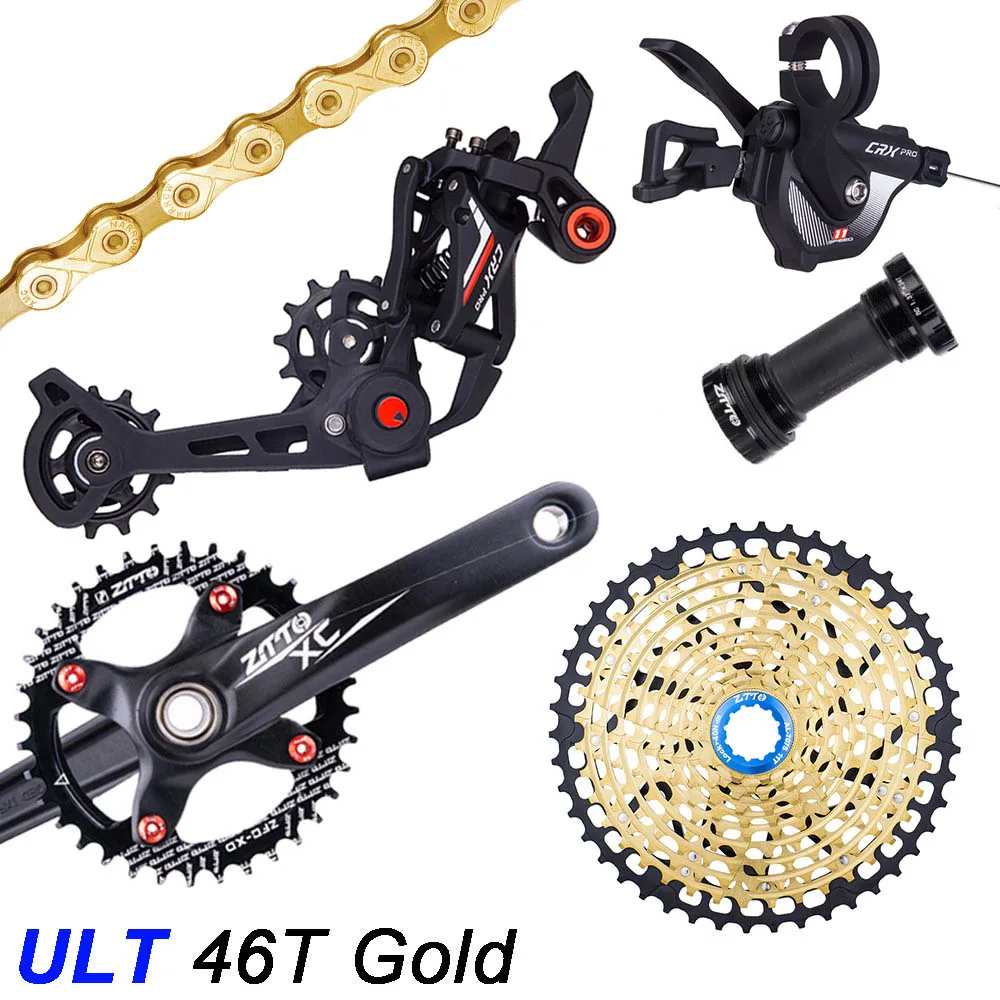 11-скоростная кассета с золотым покрытием 11-46T + Золотая цепь 116 звеньев + переключатель передач и переключатель передач 11 S + Кривошип