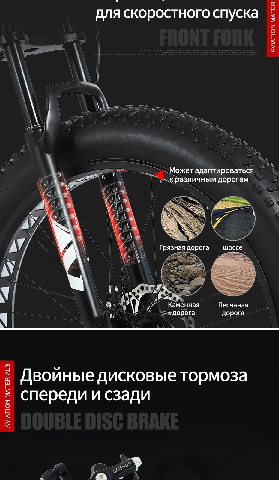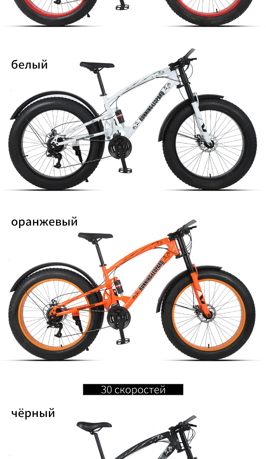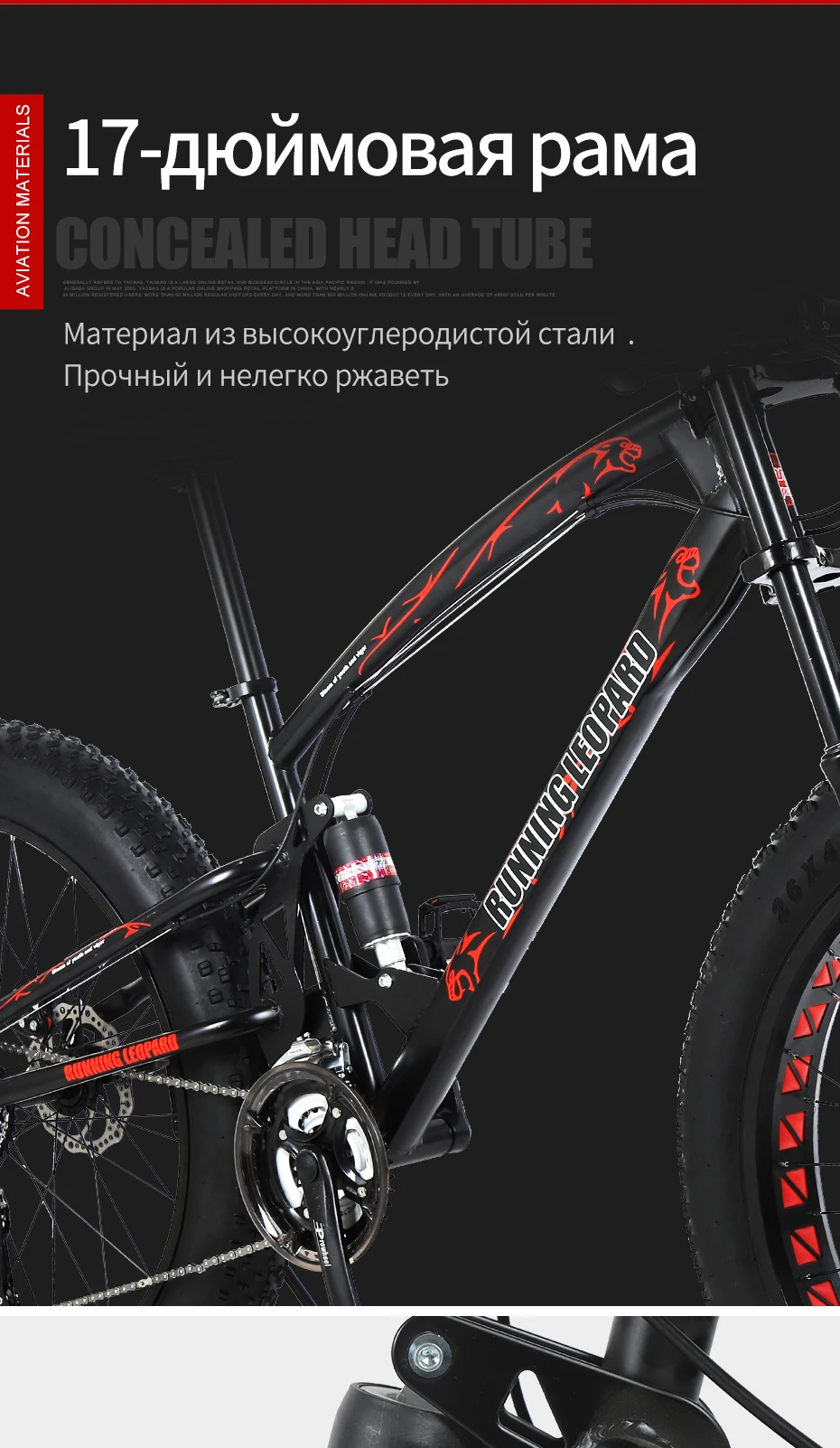 Горный велосипед Running Leopard, фэтбайк с колесами 26 Дюймов 4,0, мужской и женский велосипед, скорость 7/21/30, велосипед с вилкой и замком для снега