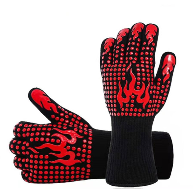 1. Термостойкие до 1472 ℉: Наши кухонные перчатки для гриля могут стабильно обеспечивать максимальную и безопасную защиту от нагрева до 1472 ℉. Эти перчатки для гриля могут сделать вас проще и безопаснее для гриля, приготовления пищи, выпечки или обработки супер горячих предметов на кухне и на открытом воздухе.