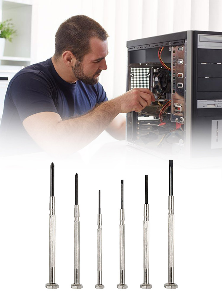 3. Наш прецизионный Набор отверток изготовлен из высококачественного хромованадиевого стального материала, закаленного карбонового стального вала, черного окисления, прочного и коррозионного сопротивления. Отвертка маленькая и очень подходит для небольших винтов.