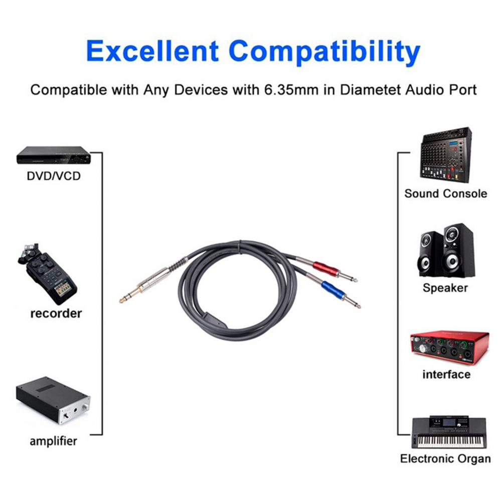 Аудио кабель стабильная передача анти-помех двунаправленный 6,35 мм Мужской Двойной один трек аудио провода для Динамик