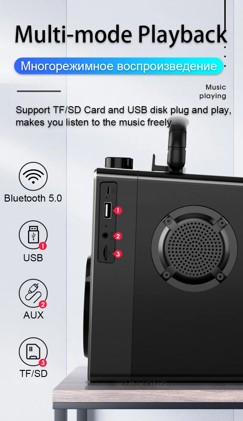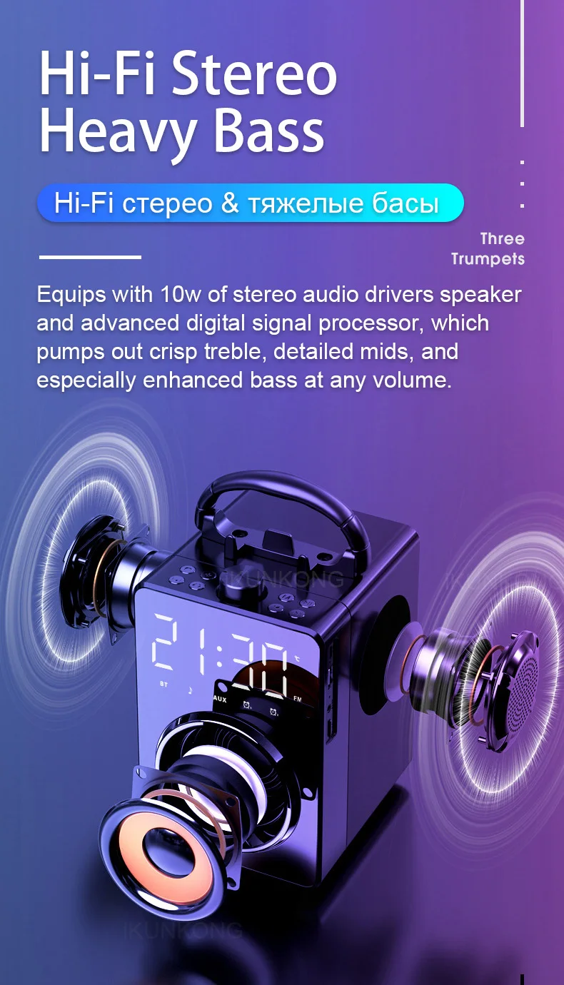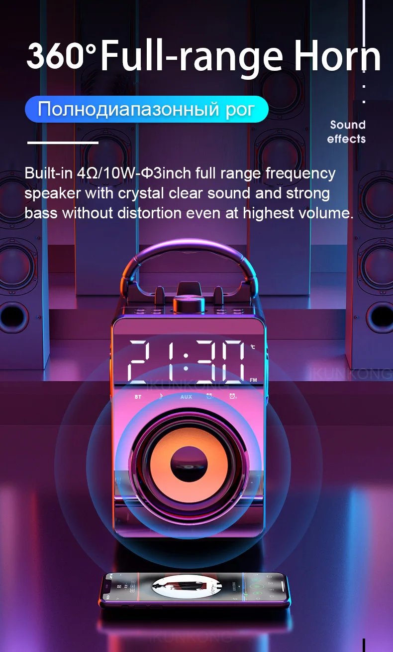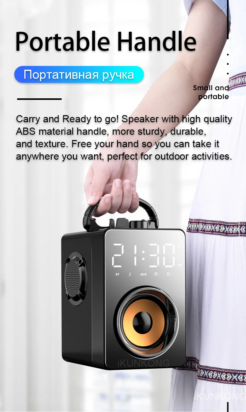 Для переноски и готов к работе! Динамик с высоким качеством из АБС-пластика с пластмассовой ручкой, более прочный, долговечный, и ее текстуру. Освободите свои руки, так что вы можете взять его в любом месте, где вы хотите, идеально подходит для активного отдыха на природе.