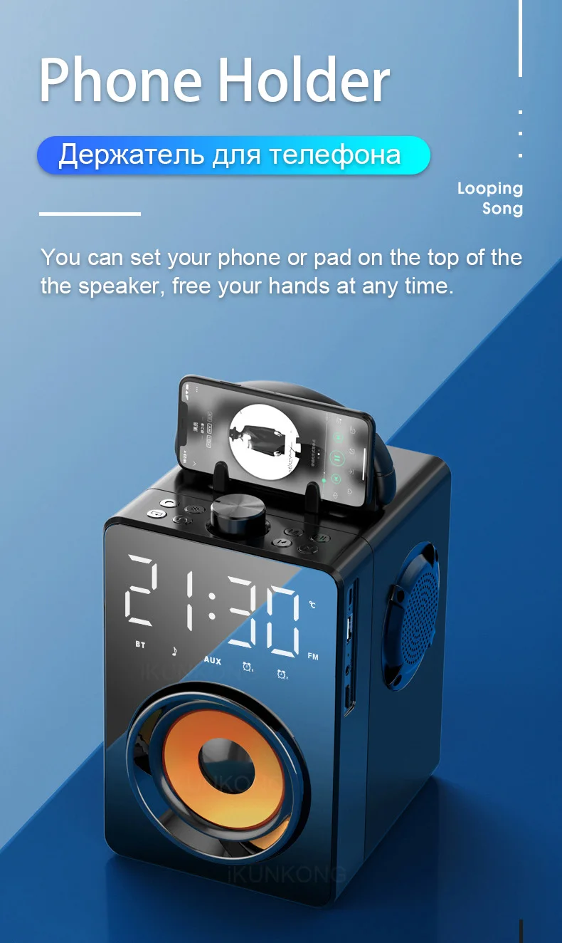 Вы можете установить ваш телефон или накладка на верхней части динамика, освободите свои руки в любое удобное для Вас время.