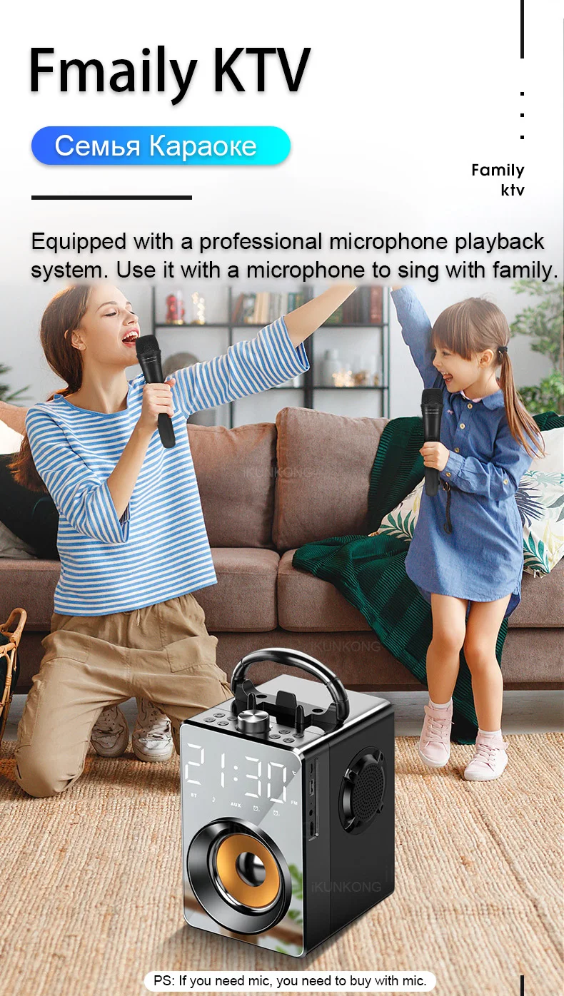 Оснащен профессиональный микрофон для караоке система воспроизведения. Используйте его с микрофоном, так что восторженные пение голос может обеспечить наилучшее музыкальное звучание атмосферу и эффект вашей вечеринке. Ручной микрофон, вы будете самой яркой вечеринки среди для девочки.