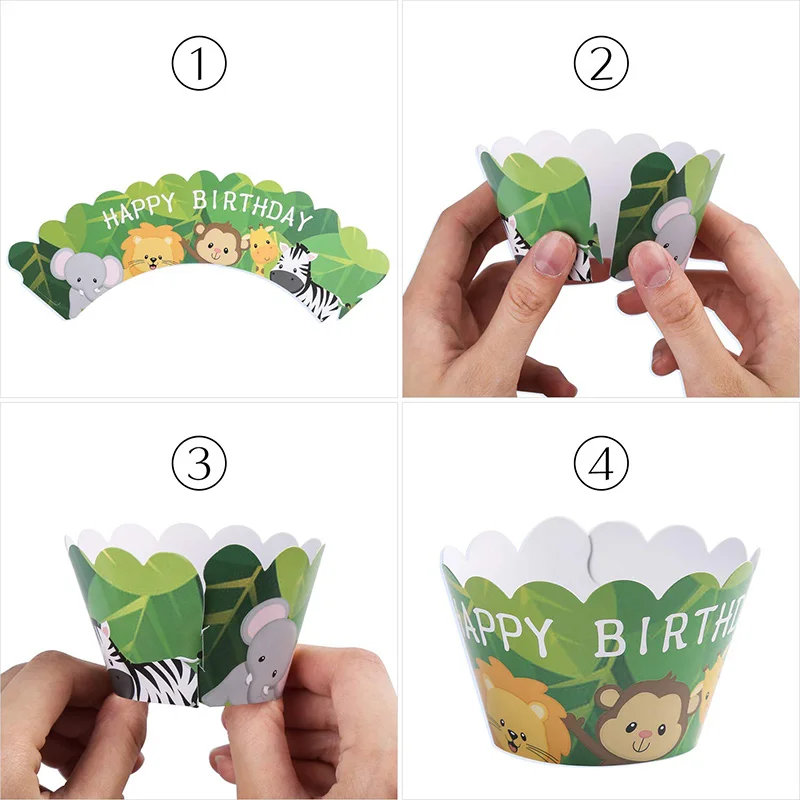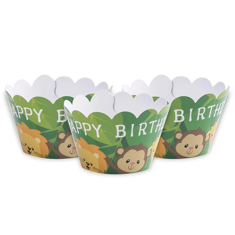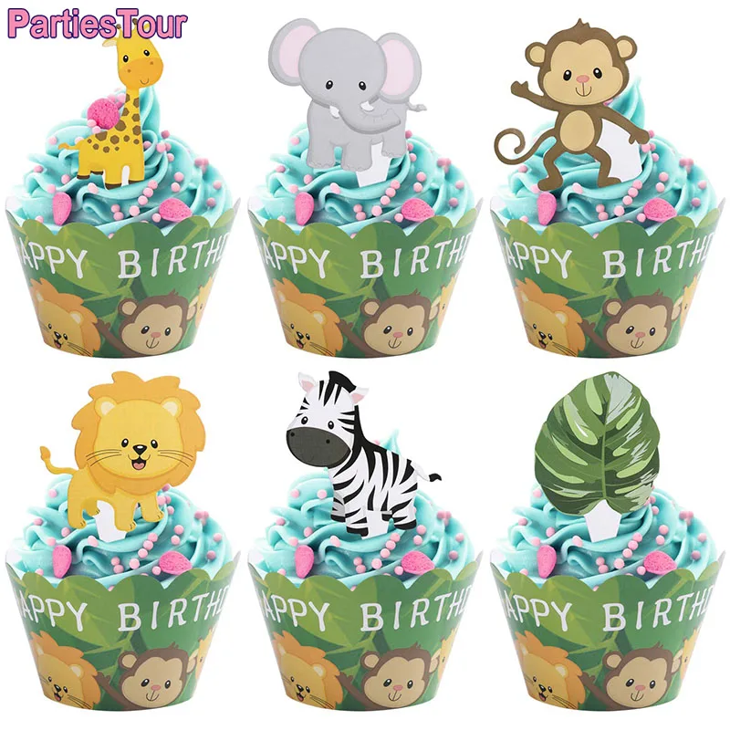 Джунгли сафари животные с днем рождения кекс топперы на капкейки обертки для лесной гирлянды лесные принадлежности для тематической вечеринки