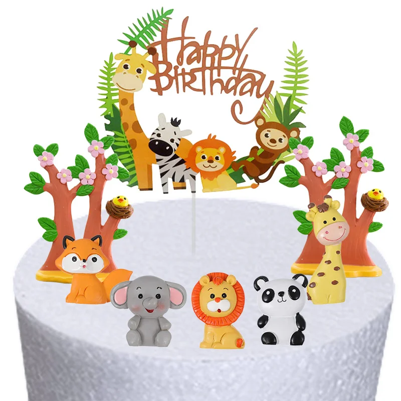 День рождения джунглей сафари животные торт Топпер украшение с днем рождения торт Топпер Лев Слон панда Жираф лиса детский подарок