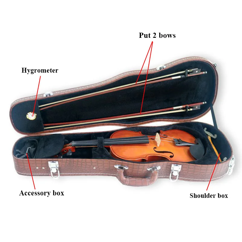 Деревянный чехол для скрипки, высококачественный чехол, легко носить с собой. Один дополнительный ящик внутри имеет размер, чтобы держать канистры, бесшумный инструмент, тюнер с зажимом и другие компактные аксессуары.