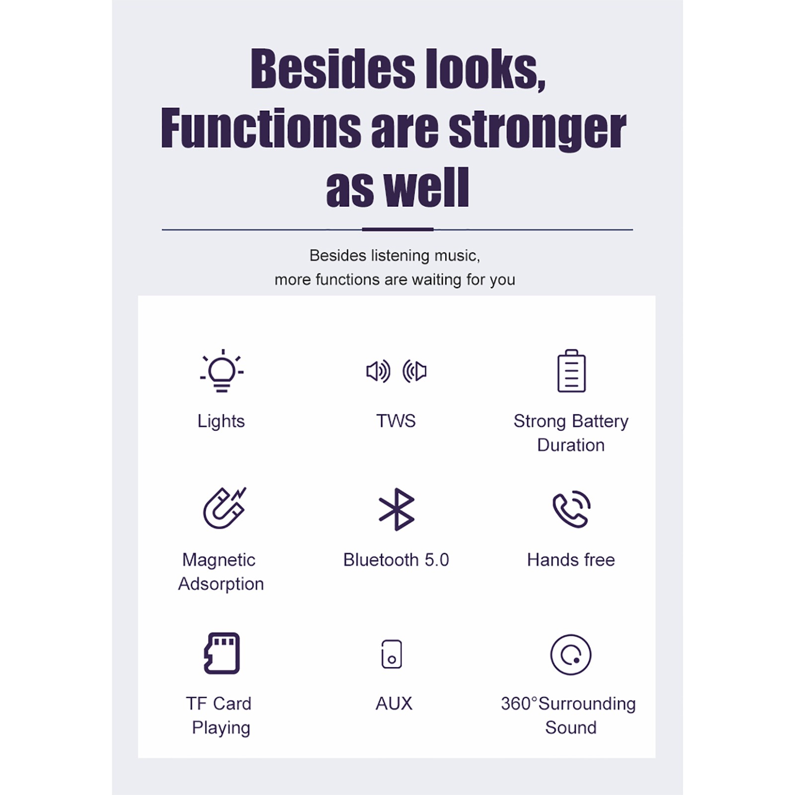 Высокое качество звука-360 ° Объемное звуковое поле, Гибкая Металлическая диафрагма, HIFI Стерео качество звука.