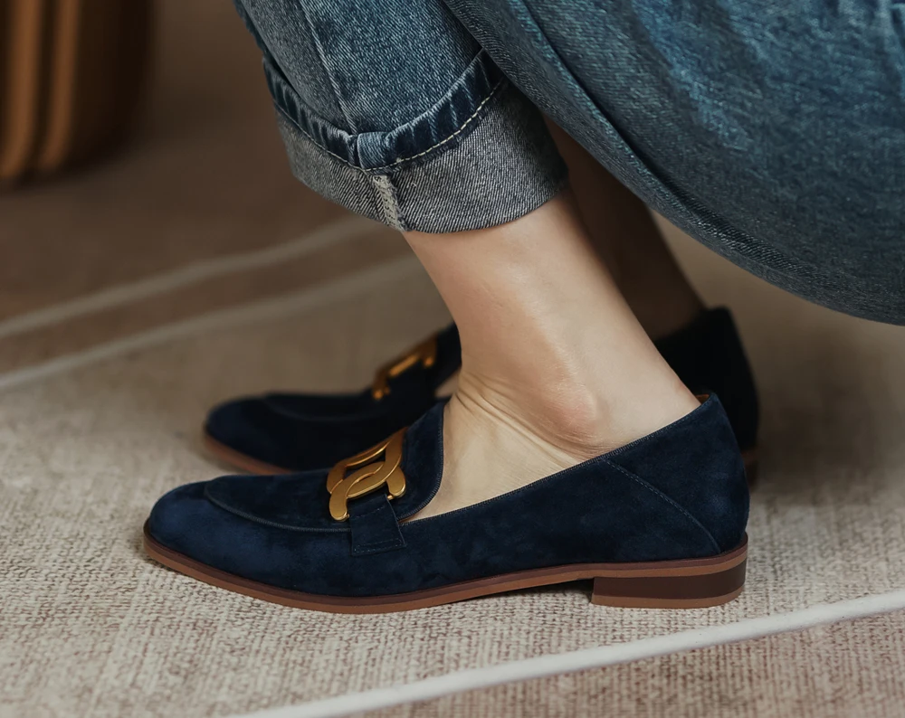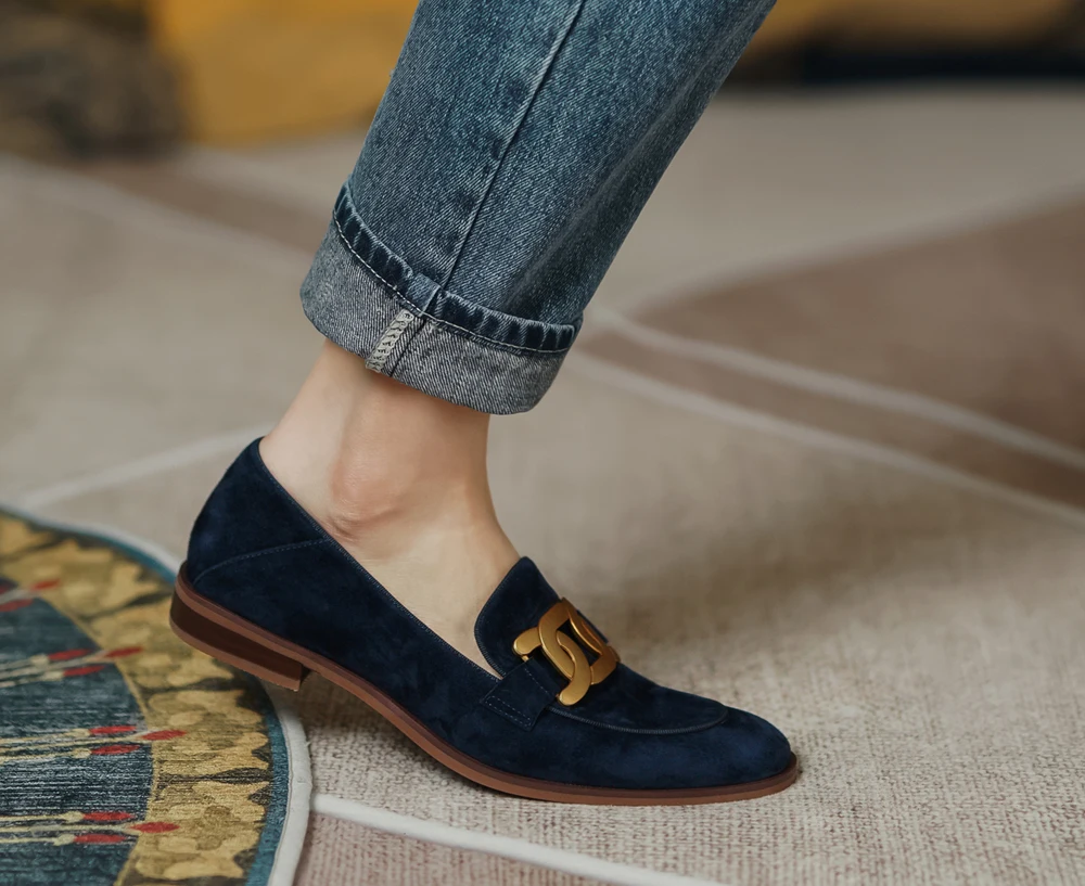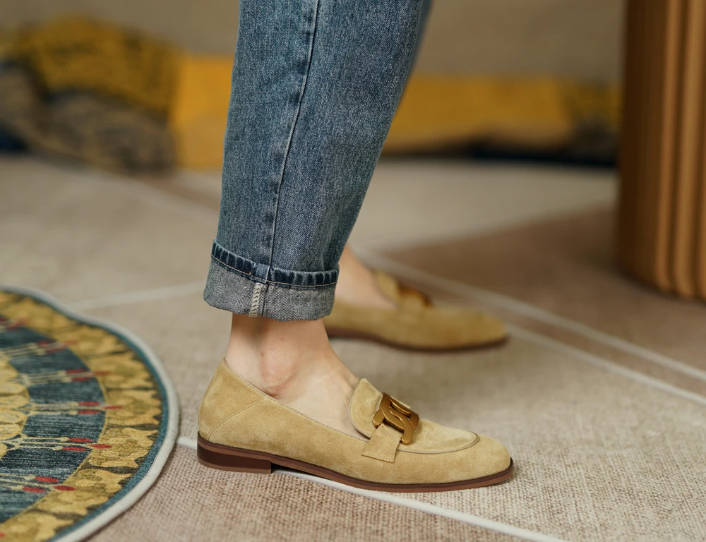 Модные женские замшевые лоферы; Сезон весна-осень; Женская обувь на плоской подошве без застежки из натуральной кожи; Женская повседневная обувь на низком каблуке; Цвет синий, бежевый