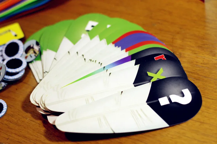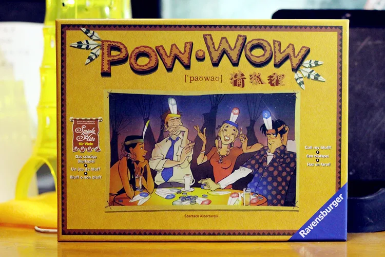 Проигрыватели вставляют перья, отмеченные числами или специальными значениями в головы, и предполагают общее количество людей, когда они не могут видеть цифры перьев на голове (но могут видеть других людей), И эта сумма может быть отрицательной! У каждого игрока должно быть больше, чем у предыдущего игрока. Люди, которые могут угадать цифры и обмануть других, станут главным в следующем круге Pow Wow. Если они догадываются неправильно и пойманы, они проиграют. Многие специальные карты удивляют каждый раунд игры. Не забудьте: вы не будете знать, какая карта находится перед вашим лбом.