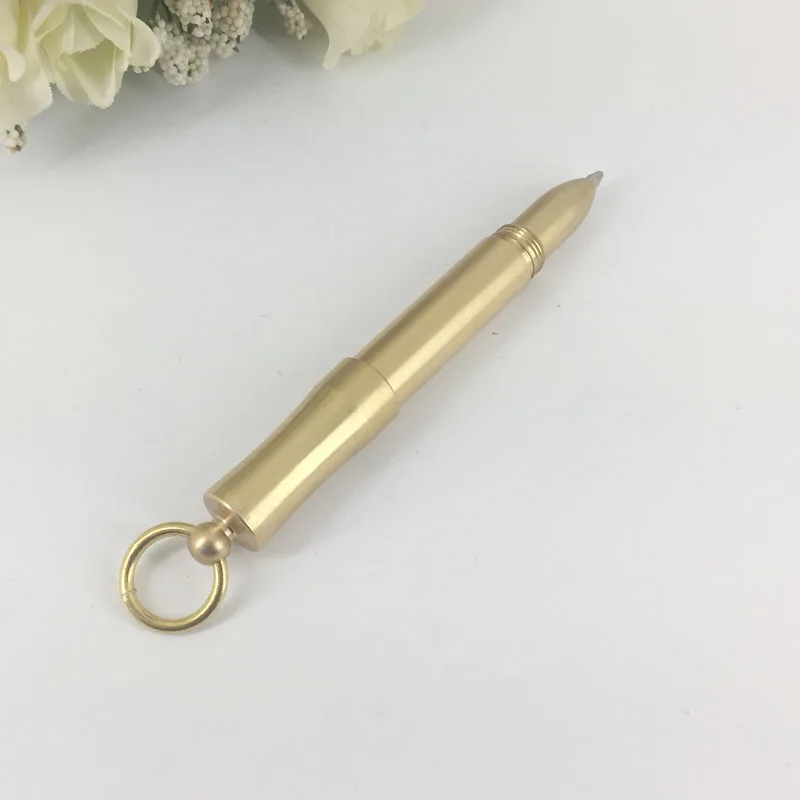 Оригинальный дизайн мини латунная шариковая ручка ручной работы портативная карманная шариковая ручка с кольцом для ключей милая маленькая короткая золотая ручка