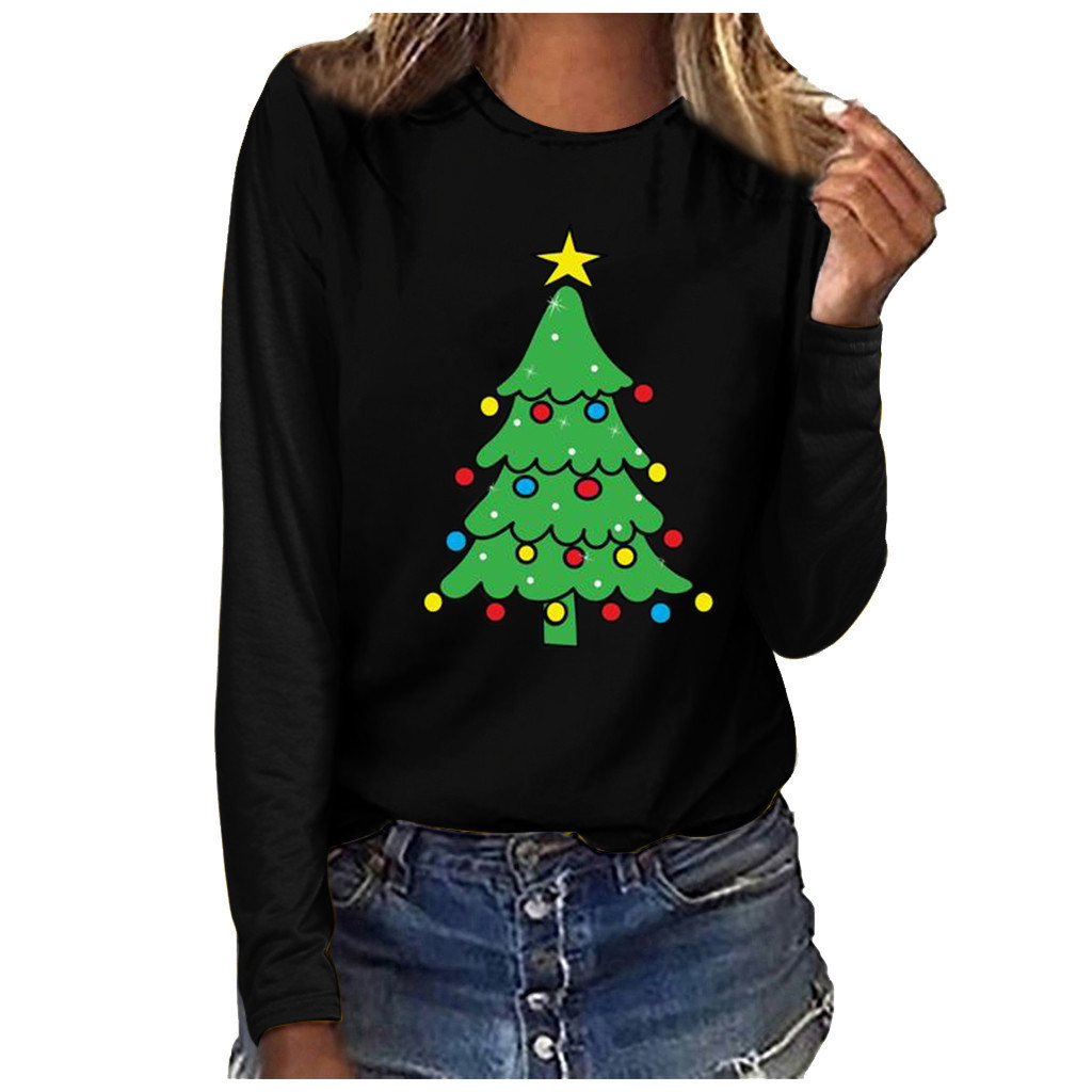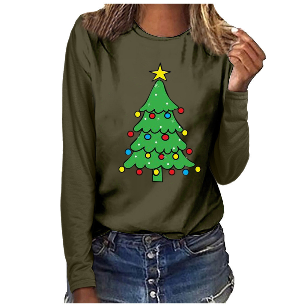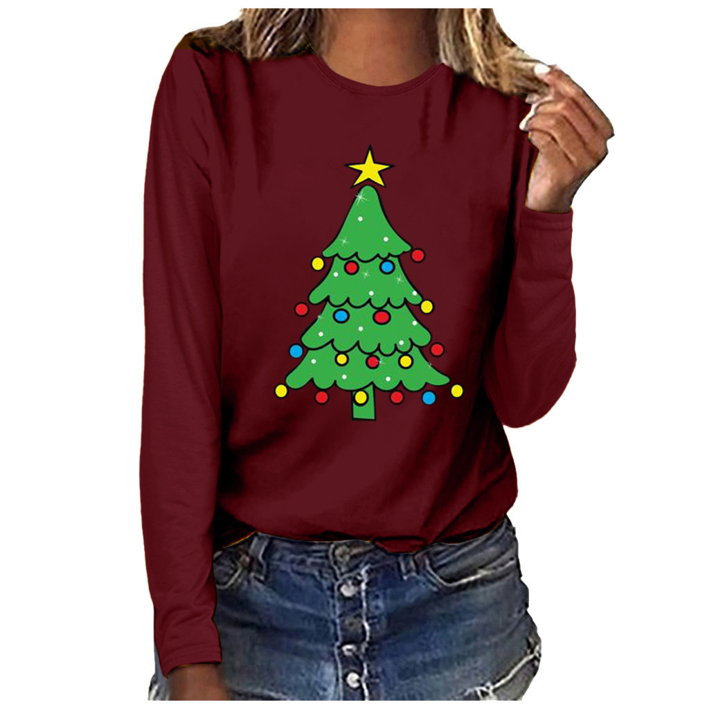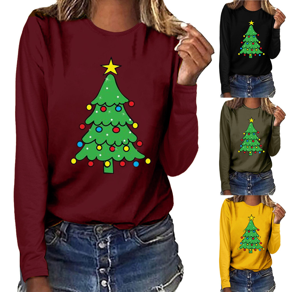 Женский топ с рождественской елкой, Повседневный свитер с длинным рукавом и круглым вырезом, пуловер, блузка