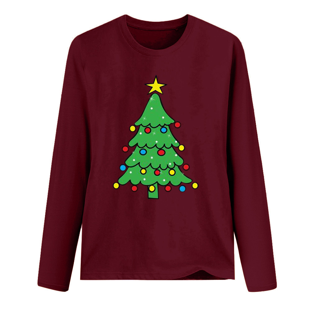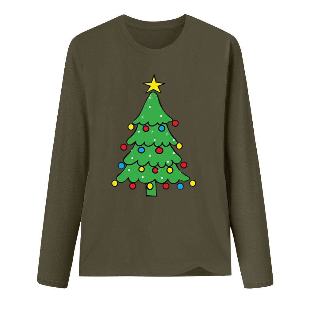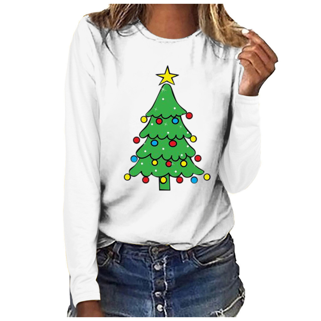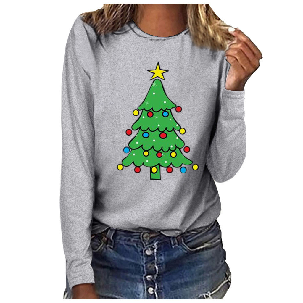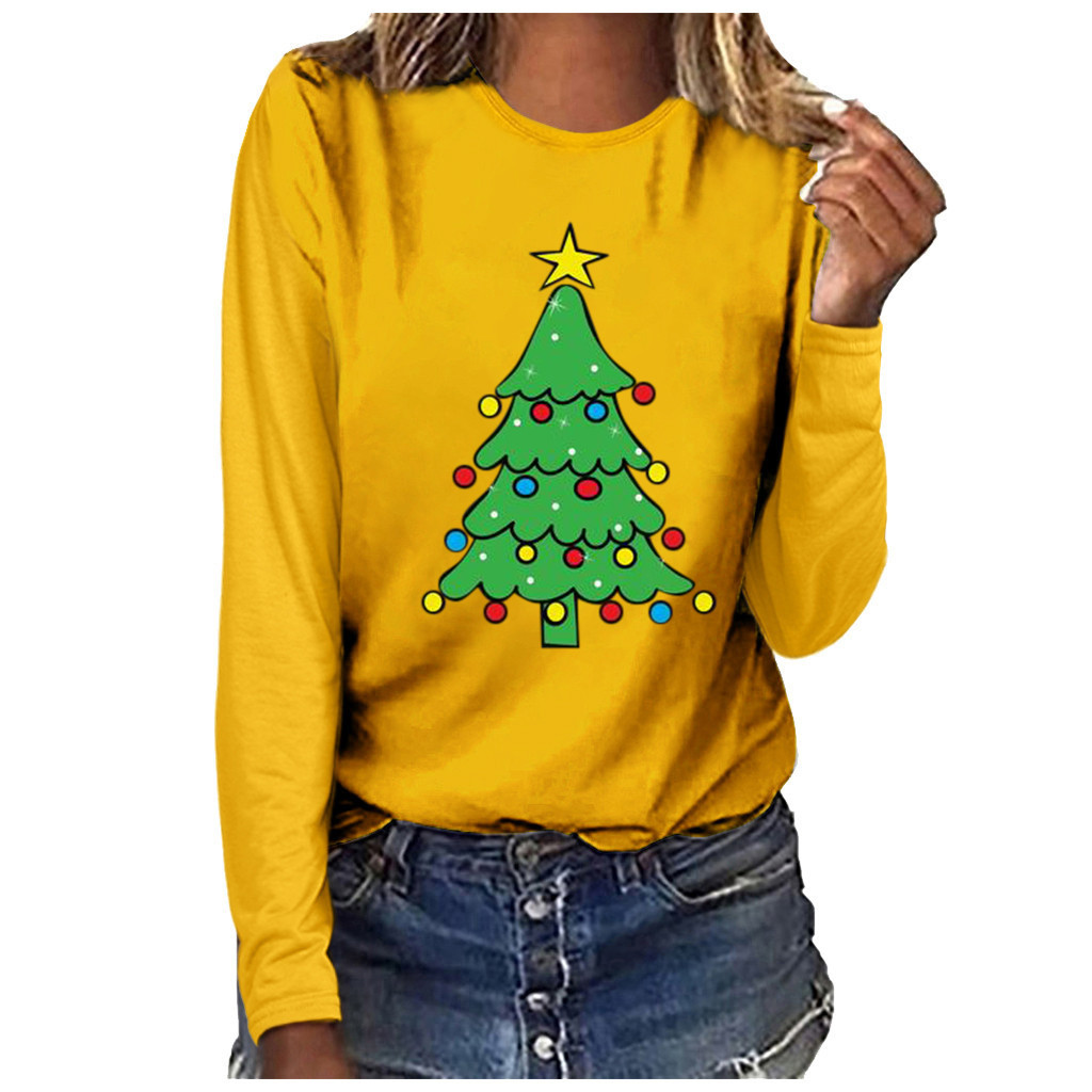 Женский топ с рождественской елкой, Повседневный свитер с длинным рукавом и круглым вырезом, пуловер, блузка
