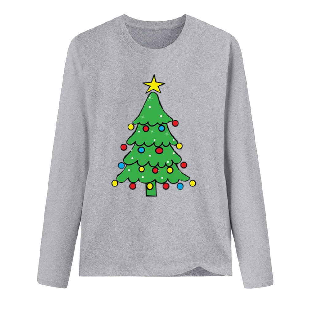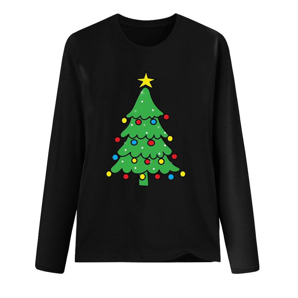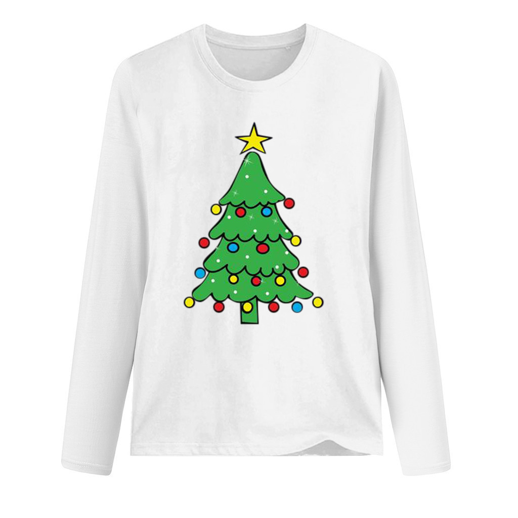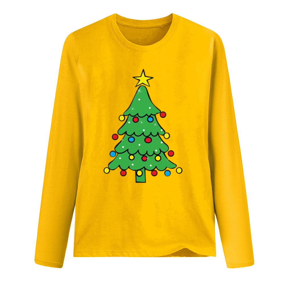 Женский топ с рождественской елкой, Повседневный свитер с длинным рукавом и круглым вырезом, пуловер, блузка