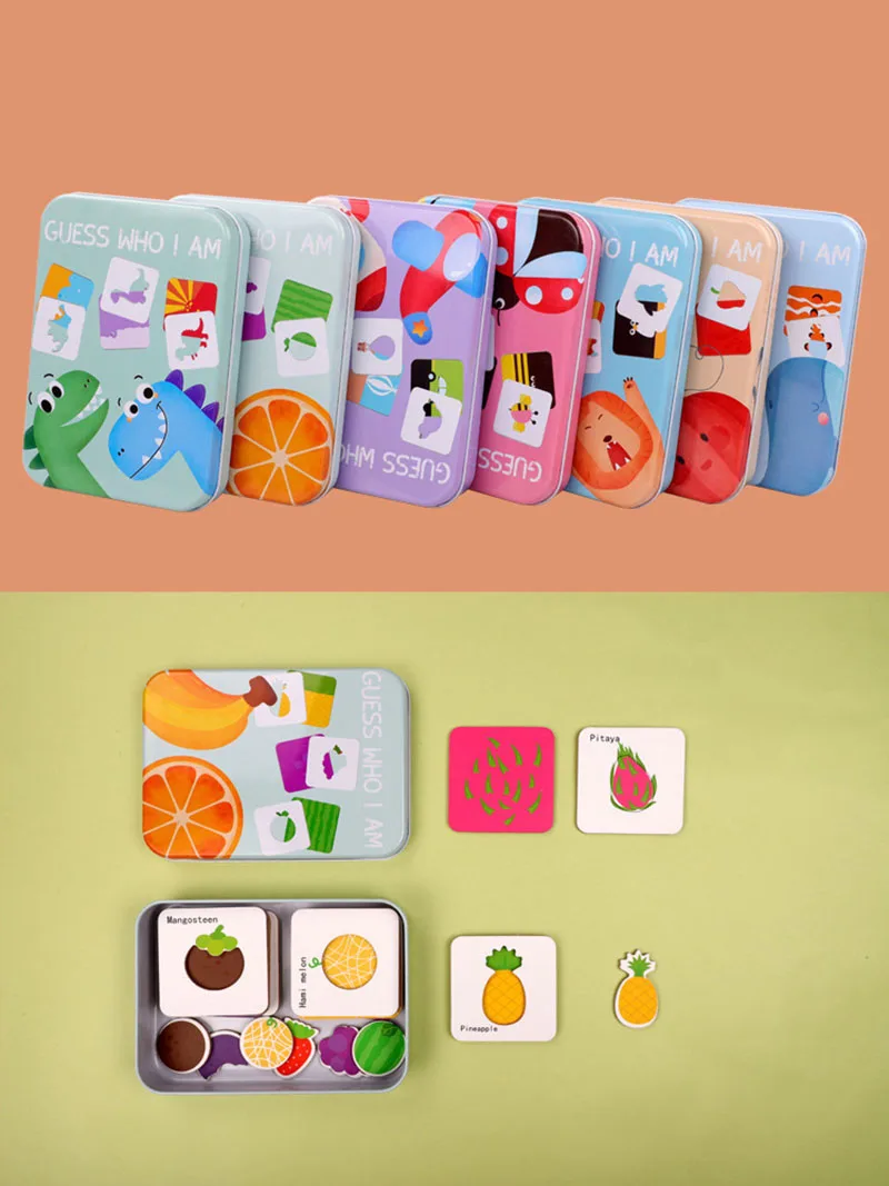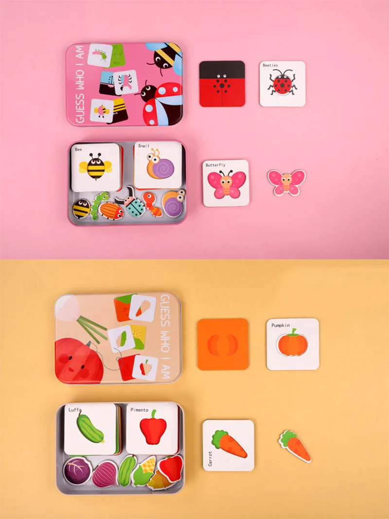 Детские развивающие карточки Монтессори, игрушки с мультяшным автомобилем, подходящая игра в виде фруктов с животными, английские Обучающие флеш-карты для детей, познавательная головоломка