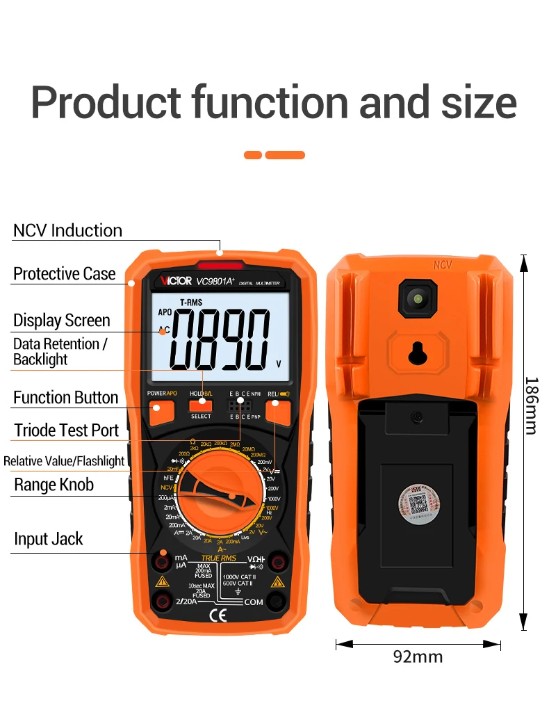 Инструмент представляет собой стабильный и высокопроизводительный цифровой мультиметр, работающий от батареи. Он использует ЖК-дисплей высотой 26 мм, чтобы чтение было четким. А Функция подсветильник ки и защита от перегрузки делают работу удобной.