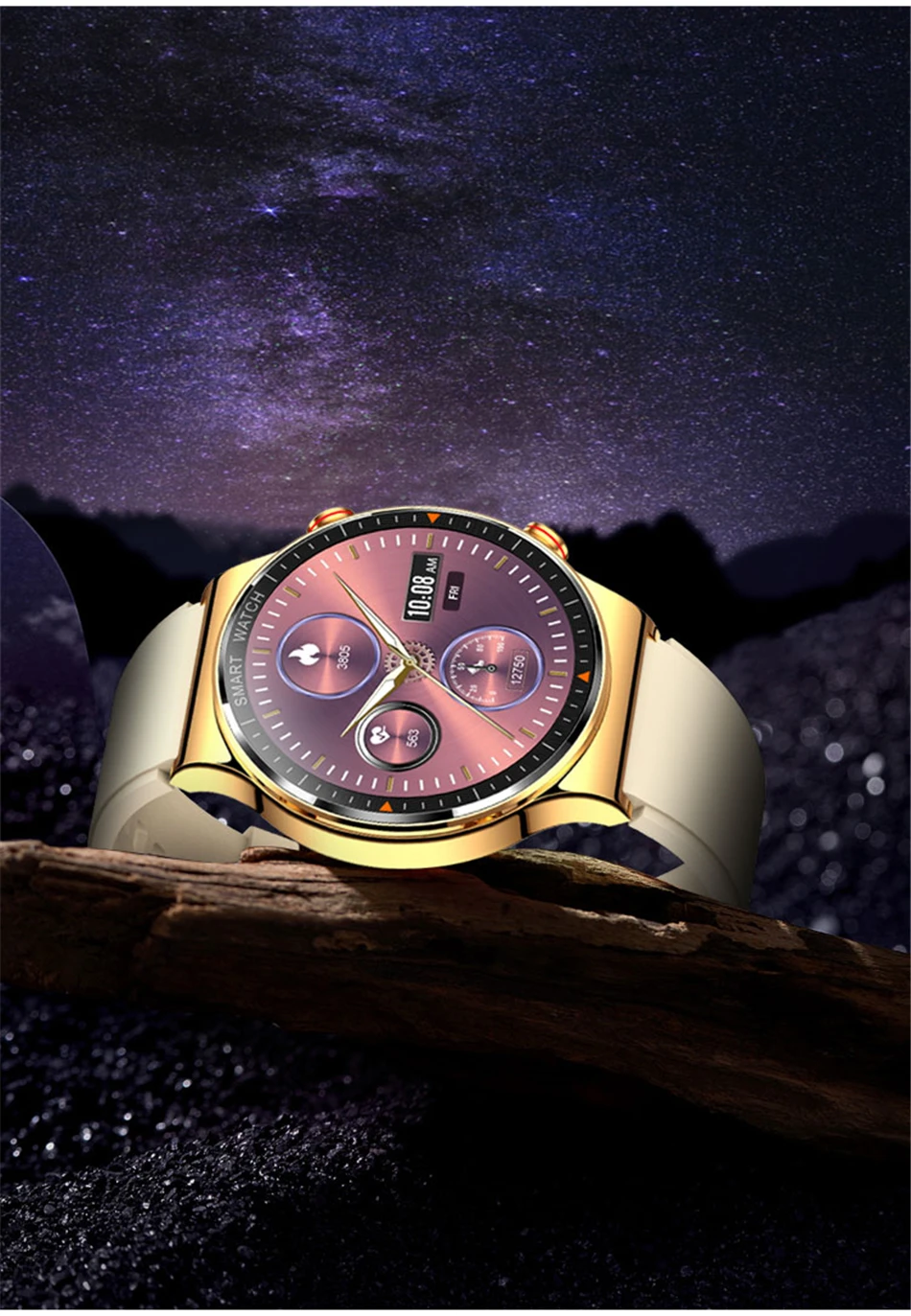 Шагомер, несколько спортивных режимов, мониторинг сердечного ритма/артериального давления/кислорода в крови/сна, напоминание о сидячем положении, напоминание о звонках/сообщениях, напоминание о воде, секундомер, управление музыкой, удаленная камера, защита от потери, будильник, погода в режиме реального времени, кнопка циферблата бокового циферблата приложения, пользовательский циферблат часов.