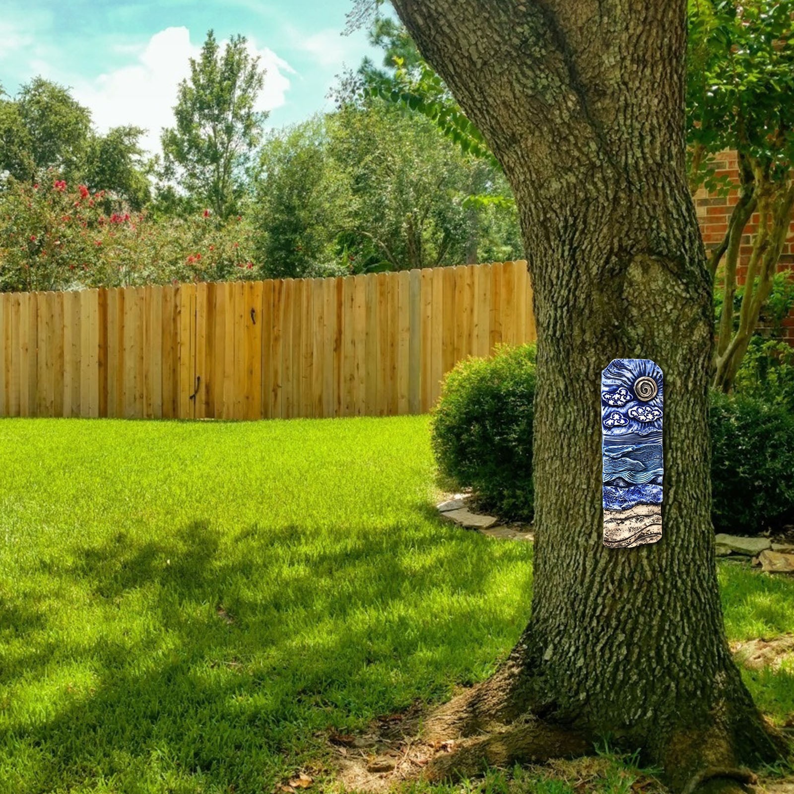 Эту скульптуру в виде звездного неба, океана, можно повесить на ветки, заборы, садовые ворота или настенные панели. Размер идеально подходит для входа в ваш секретный сад, крыльца или дверного проема.