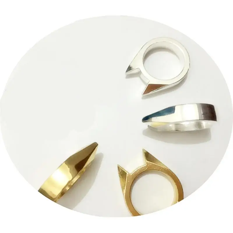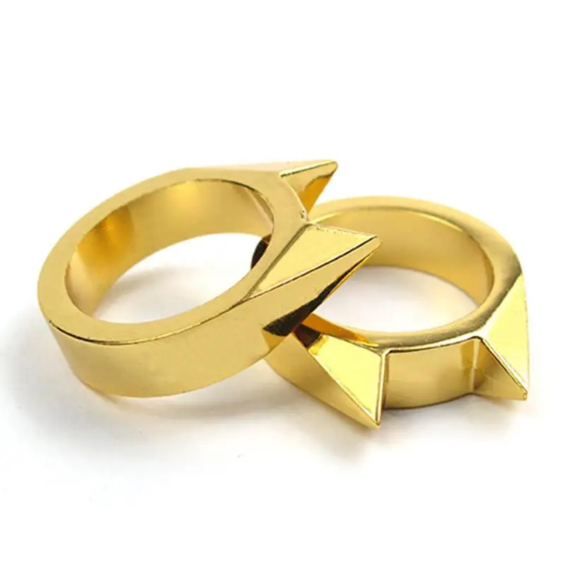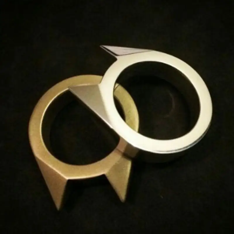 Особенности: Простой и стильный дизайн. Для ежедневного УКРАШЕНИЯ, самозащиты, ломки окон или другого аварийного использования. Необходимый инструмент для использования на открытом воздухе. Характеристики: Цвет: Золотой/черный (опционально) Материал: сплав Размер: 32*26*7 мм Внутренний диаметр: 20 мм Вес: прибл. 12g/0,4 oz посылка список: 1 * Кольцо для самозащиты