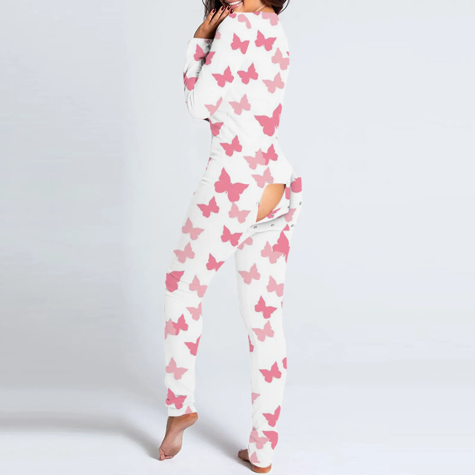 Сексуальные женские комбинезоны, пуговицы для пижамы с принтом бабочки, функциональный комбинезон для взрослых, комбинезон для взрослых