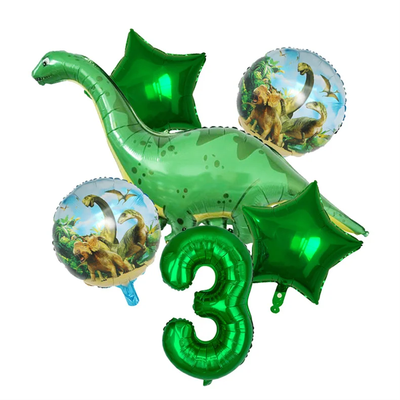 6 шт./компл. шары из фольги динозавра на день рождения в стиле Юрского периода, зеленые шары из фольги с номером, товары для дня рождения, украшения для мальчиков