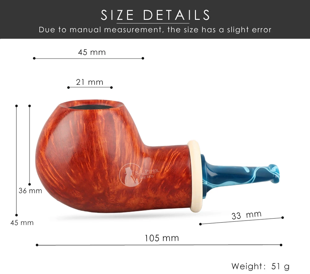 ● Превосходный материал и изысканный материал: ручная работа, изготовлено из высококачественного корня дерева Briar, хорошо сконструировано и гладко на поверхности, очень прочный; Используется Тщательно продуманный лак, чтобы он выглядел более деликатным и красивым.