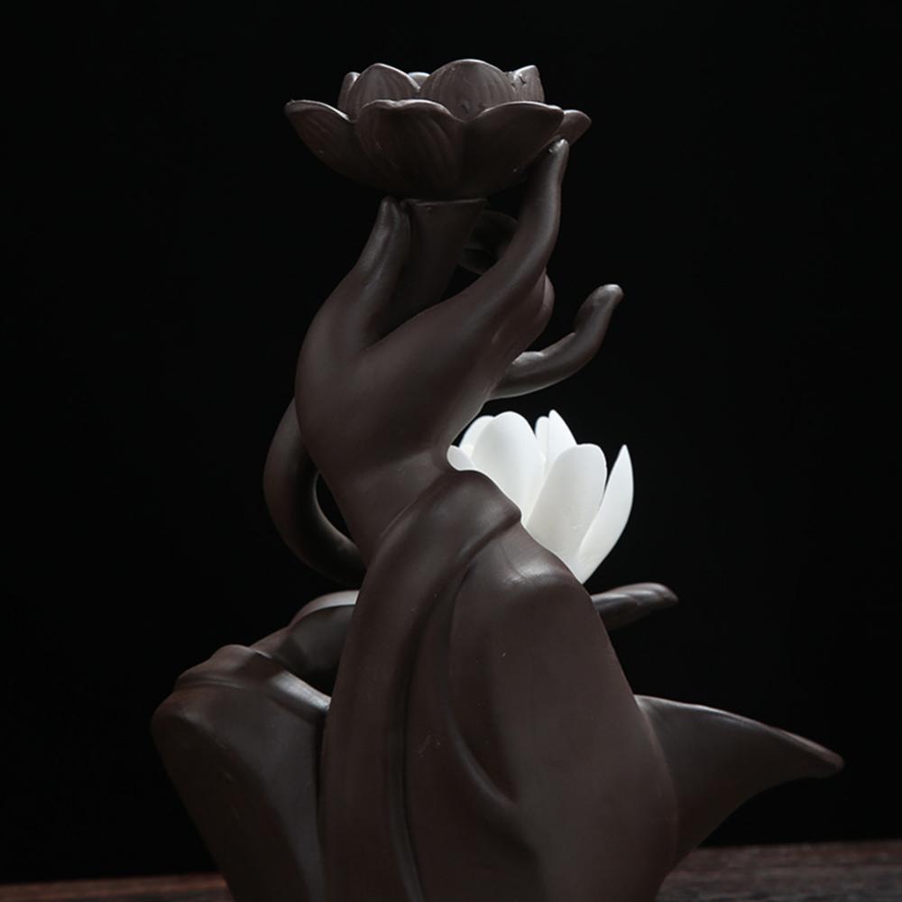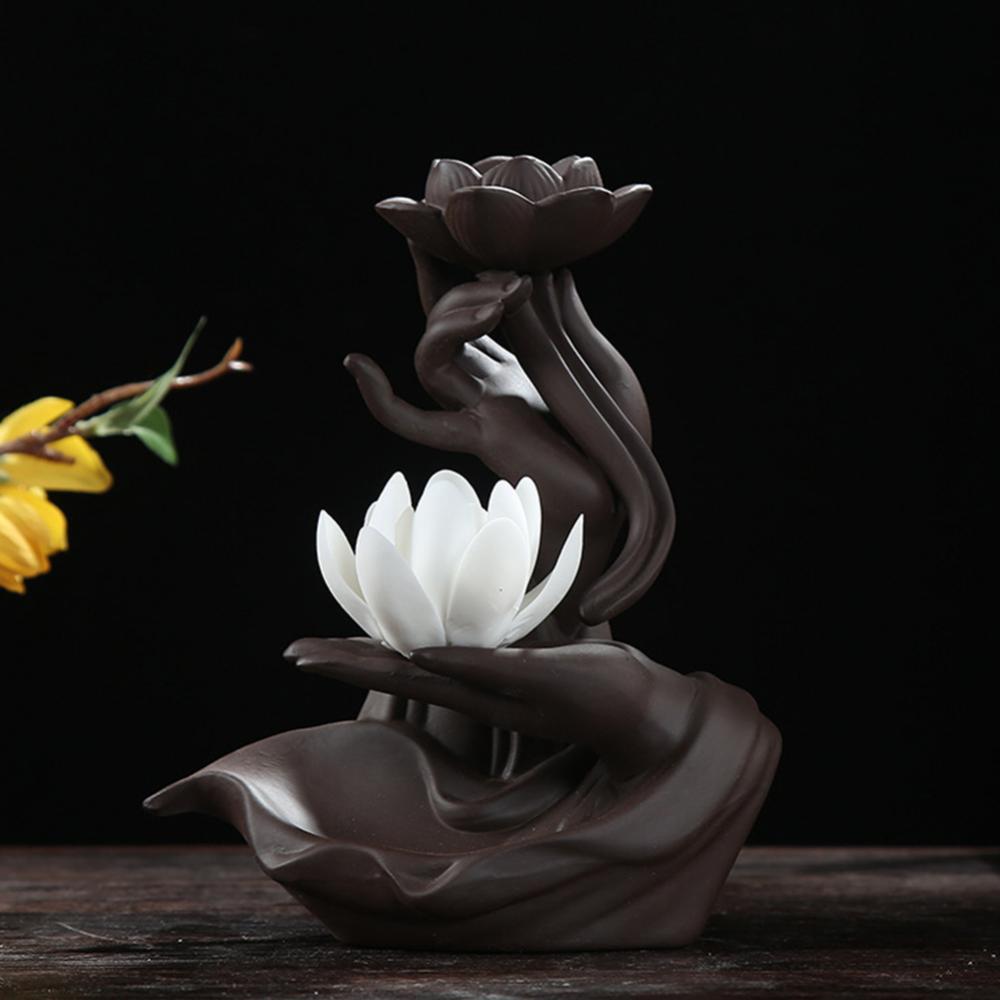 Керамическая Будда ручной лотоса обратный водопад ладан горелка держатель домашний декор