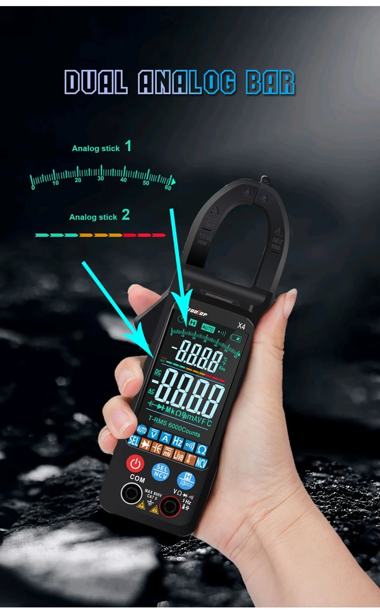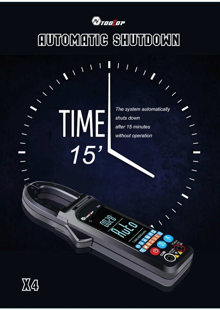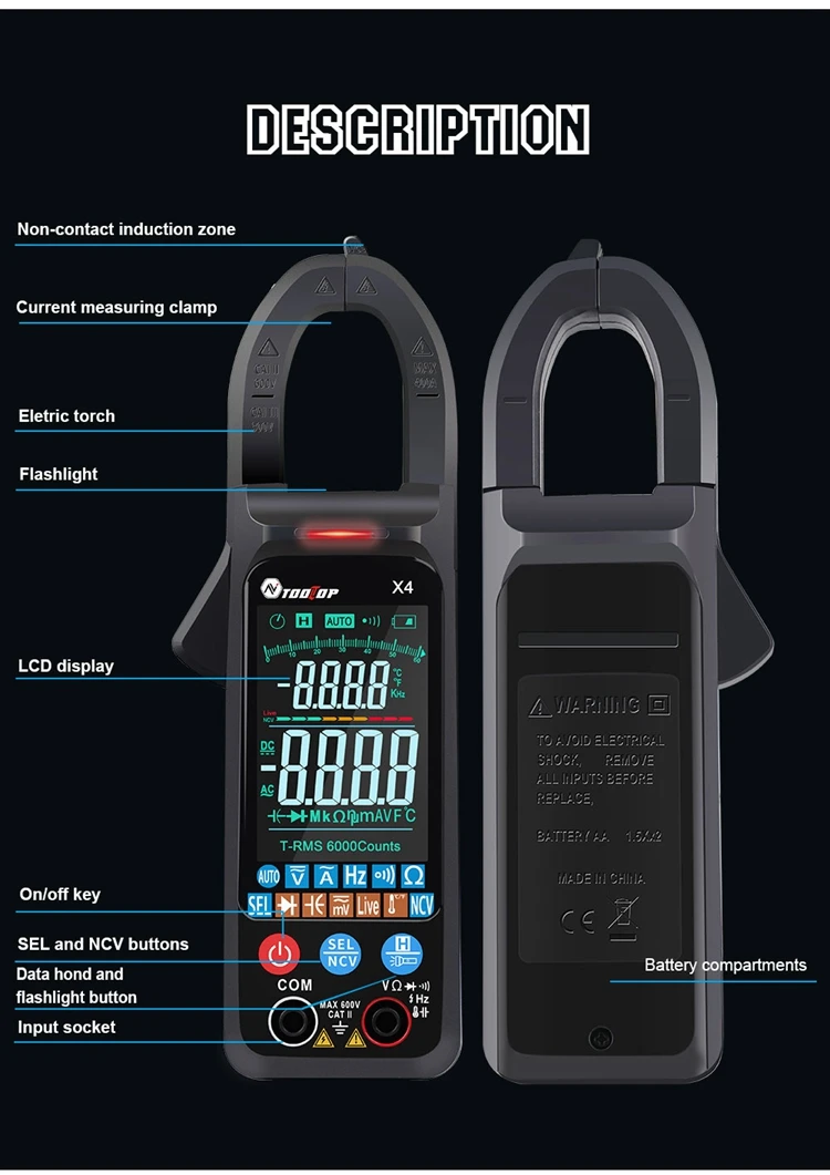 TOOLTOP цифровой клещи цветной большой экран автоматический мультиметр 6000 отсчетов NCV переменного напряжения тока 400A емкость обнаружения