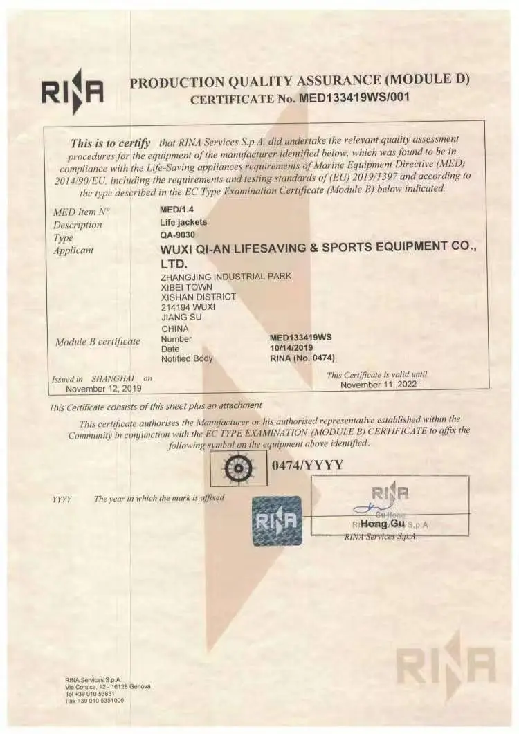 Внутри жилета находится баллончик с зарядом углекислотой 33гр ( жилет поставляется сразу пригодным к эксплуатации).