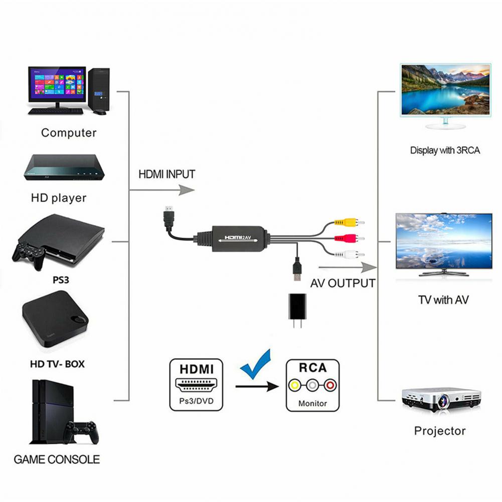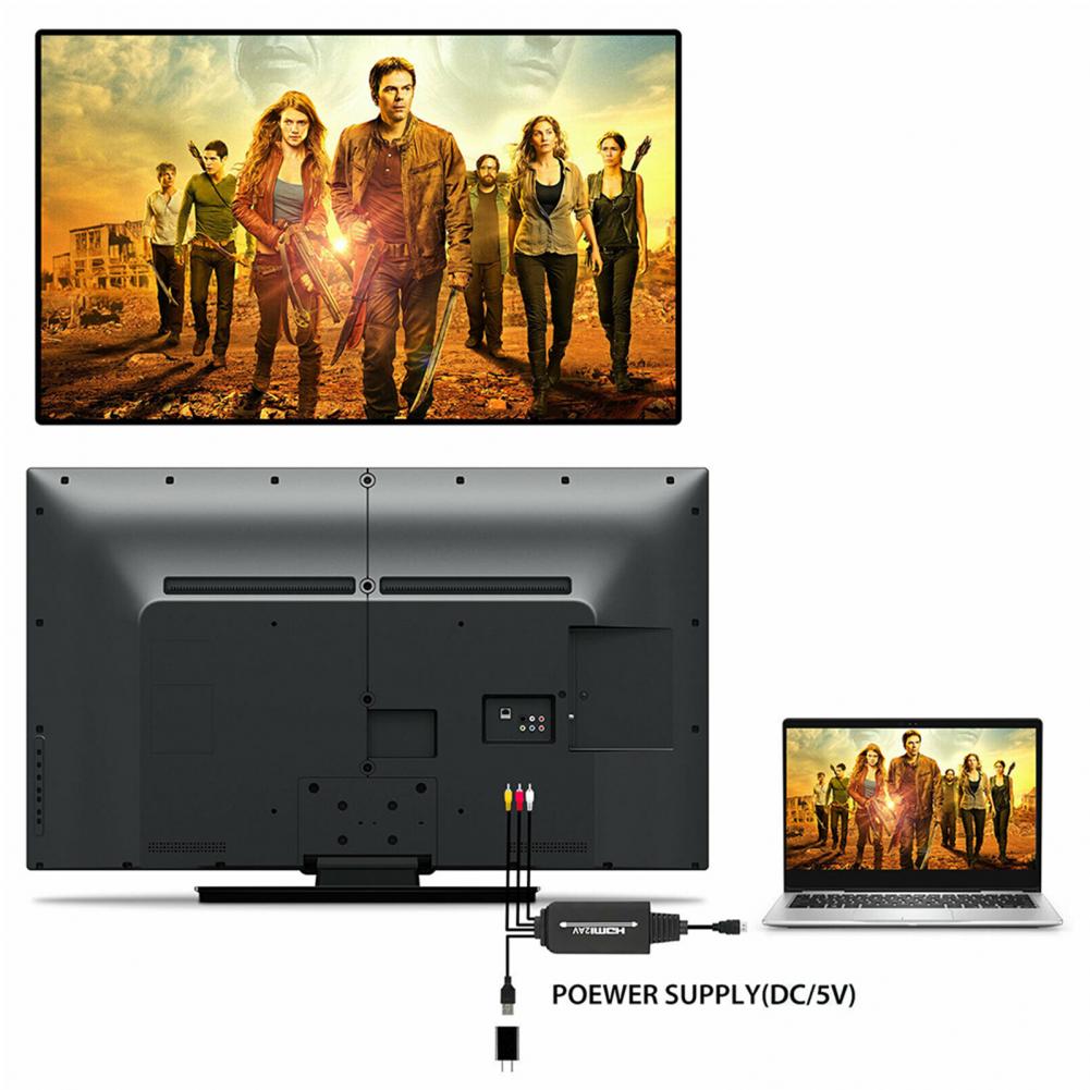 AV адаптер Plug and Play высокоскоростной ABS HDMI-совместимый с 3 RCA конвертер для компьютера