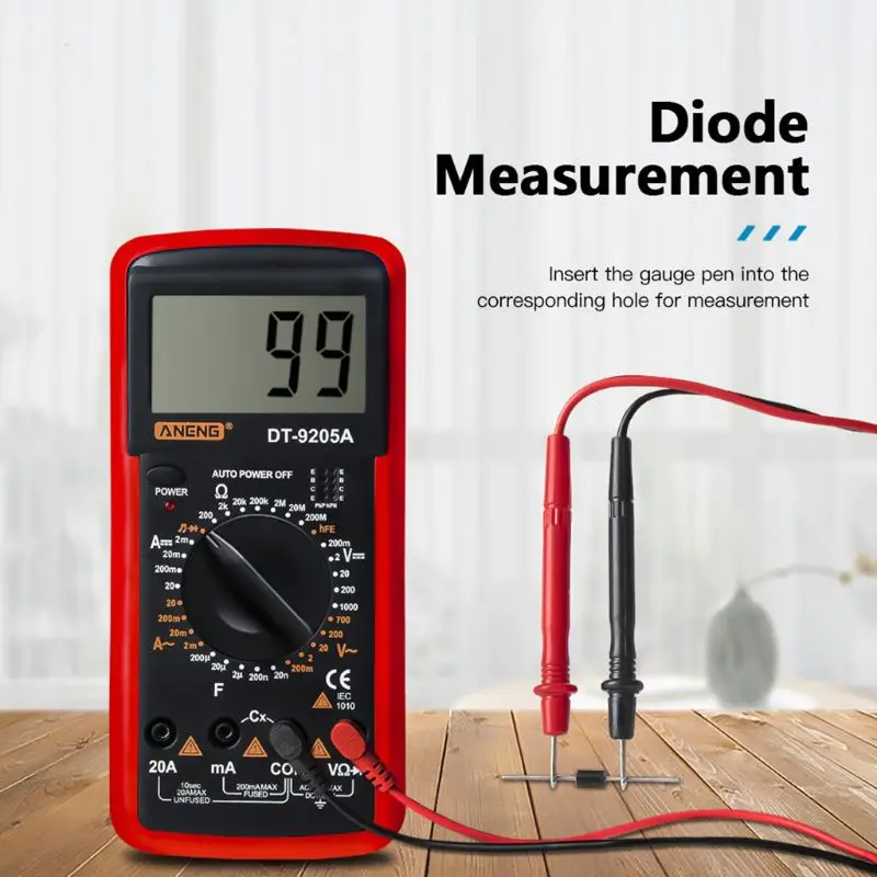 DT9205A hFE AC DC ЖК-дисплей Профессиональный электрический ручной тестер Цифровой мультиметр Амперметр Multimetro