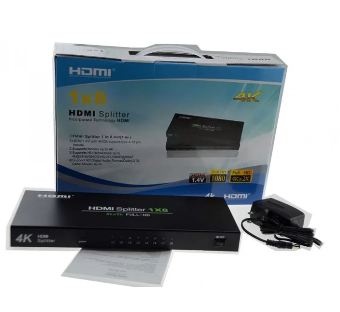 1x8 HDMIсплиттерраспределяет1источникHDMIдо 8HDMIодновременно. поддержка 3D видео.Удобноерешение дляHDTV, STB, DVD для проекторов.
