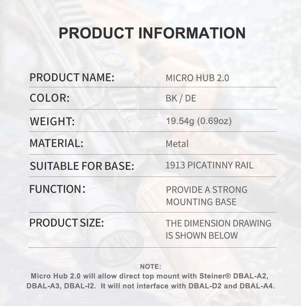 Примечание: Micro Hub 2,0 позволит установить непосредственно сверху с помощью Steiner®DBAL-A2, DBAL-A3, DBAL-I2. Он не будет соединяться с DBAL-D2 и DBAL-A4.