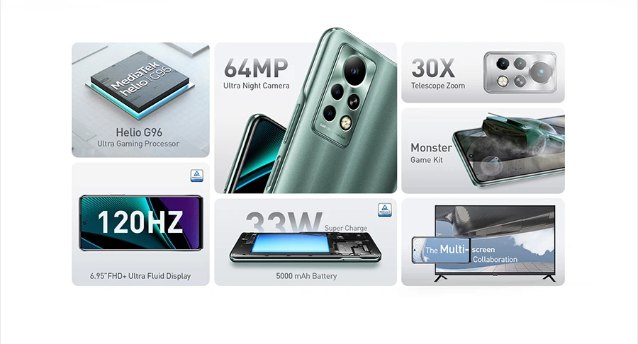 Screen:6.95" FHD+ 120HZ Infinity-O Display; Resolution: 1080*2460P