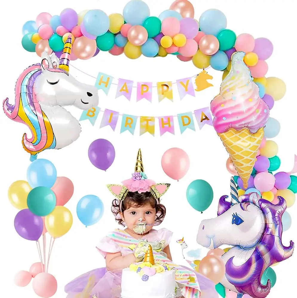 Многоразовые Единорог шары вечерние украшения на день рождения мороженое гирлянда арочный комплект для детского дня рождения Детские вечерние принадлежности для душа