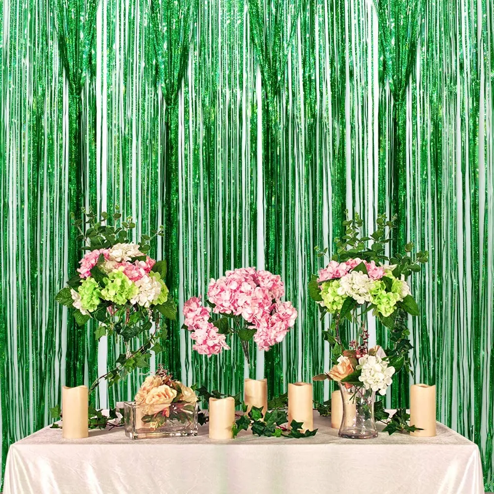 Diy фото стенд зеленый фольга бахрома шторы тропические джунгли сафари Гавайский детский душ день рождения Фото фоны Декор