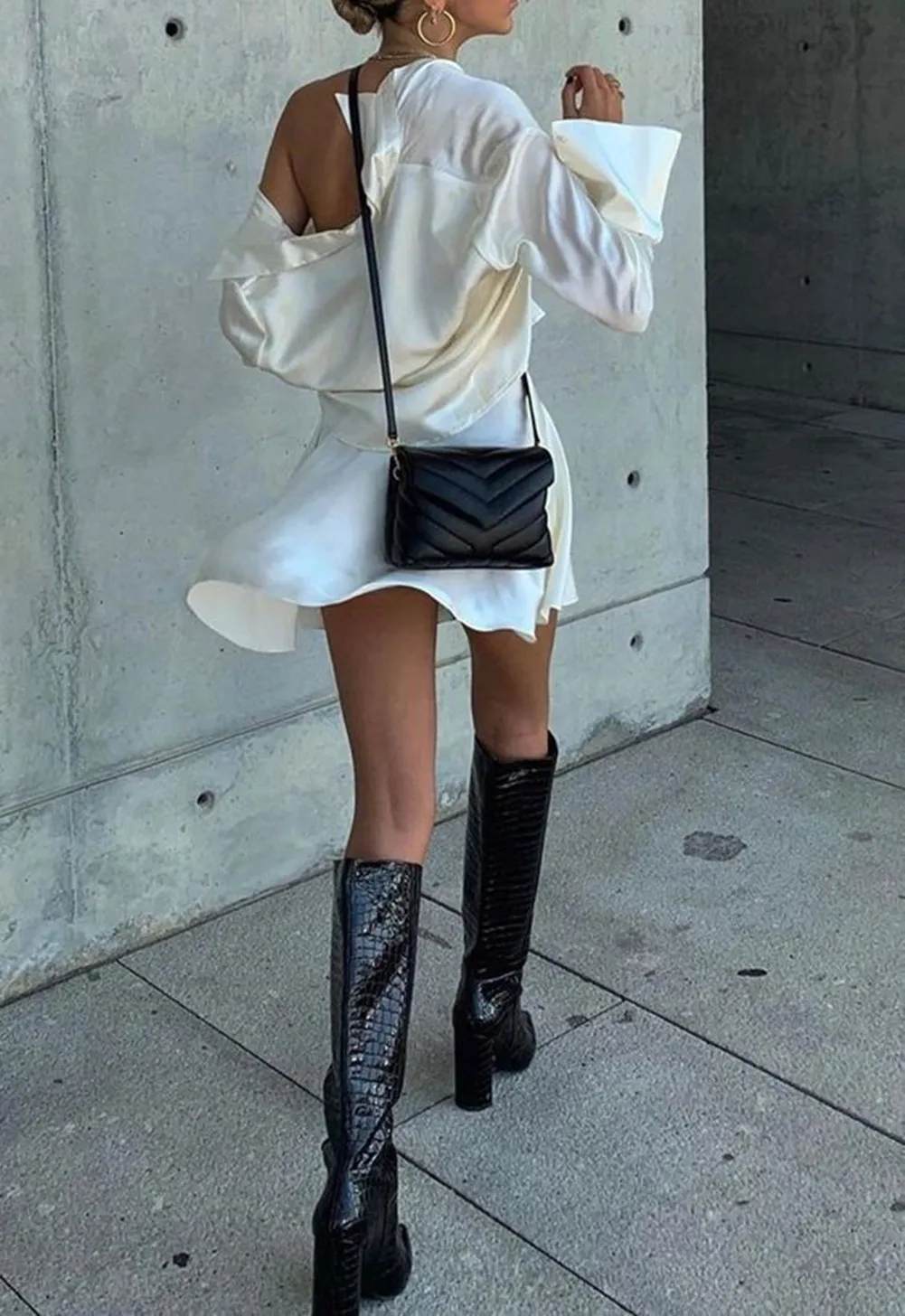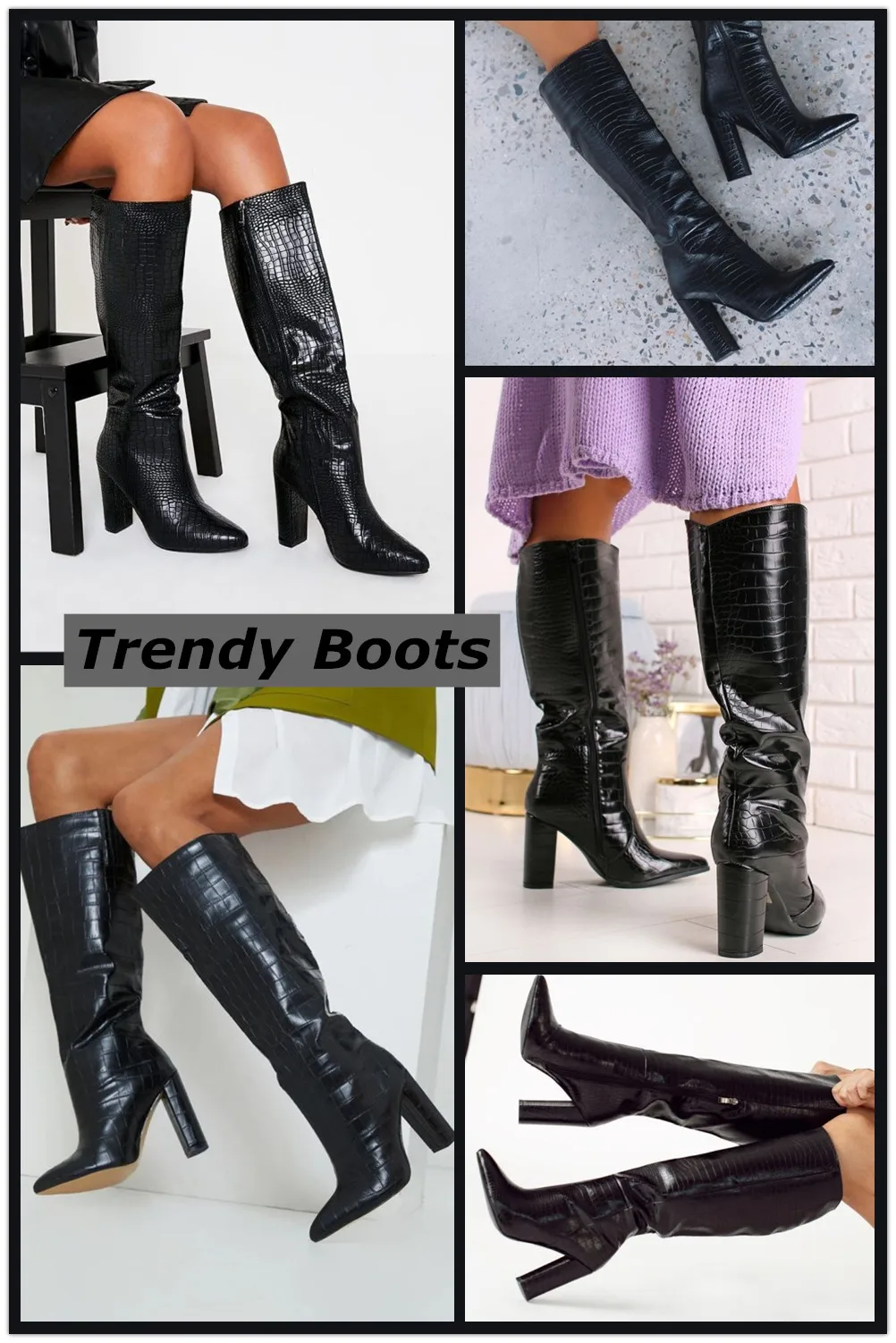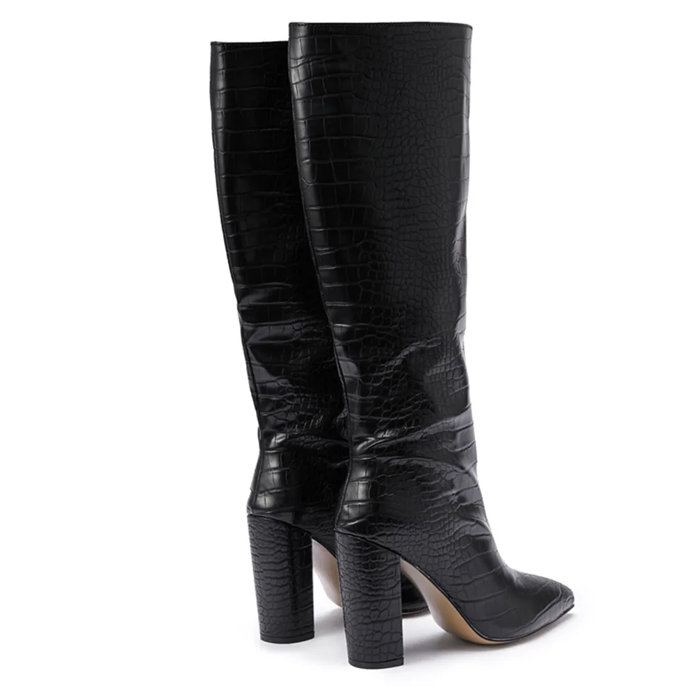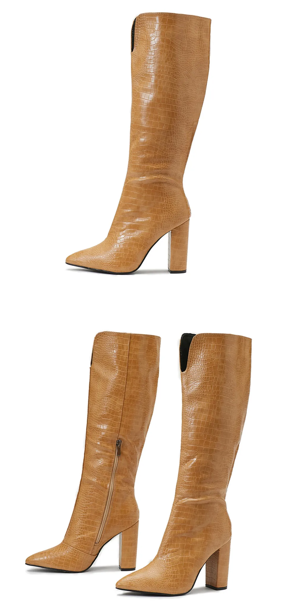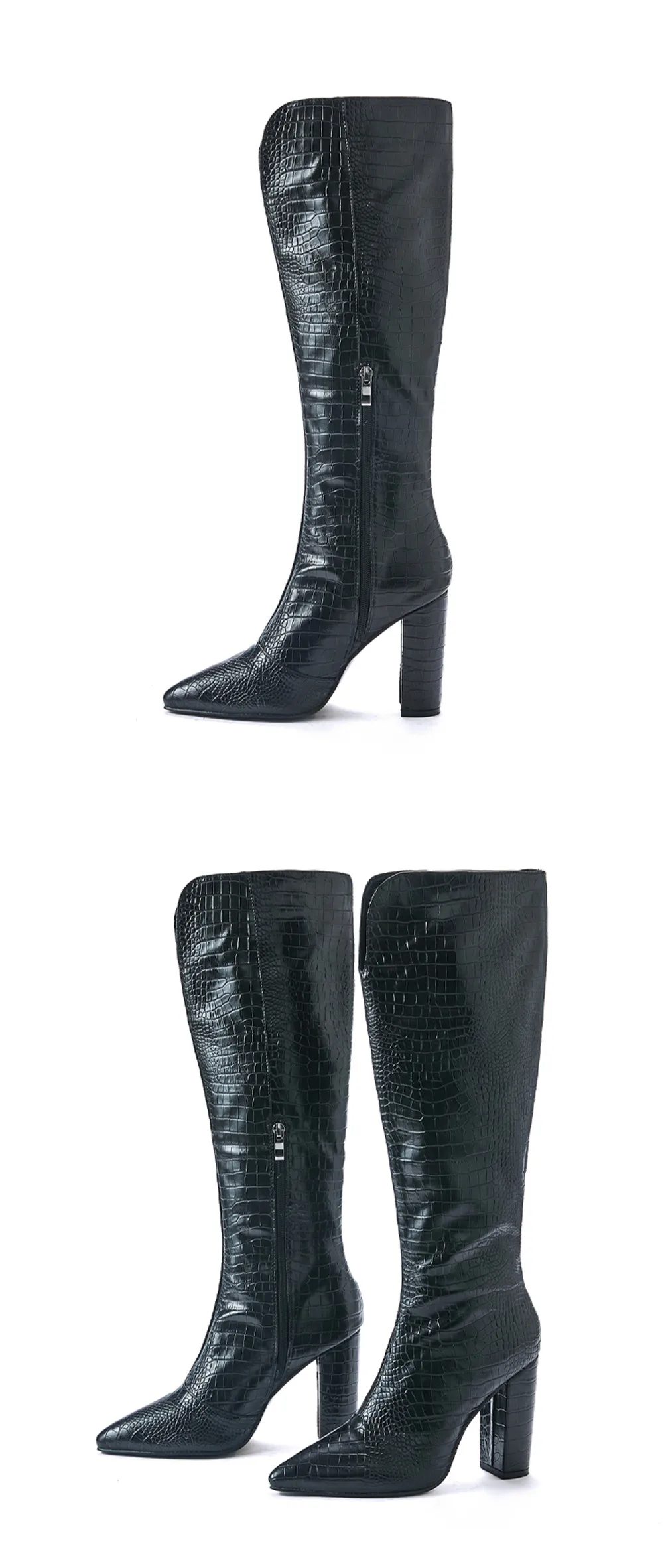 Женские ботинки на не сужающемся книзу массивном каблуке; Модные роскошные женские сапоги до колена с острым носком в западном стиле; Лидер продаж 2021 года