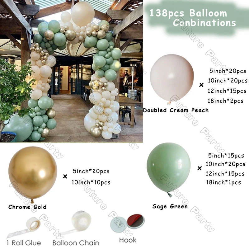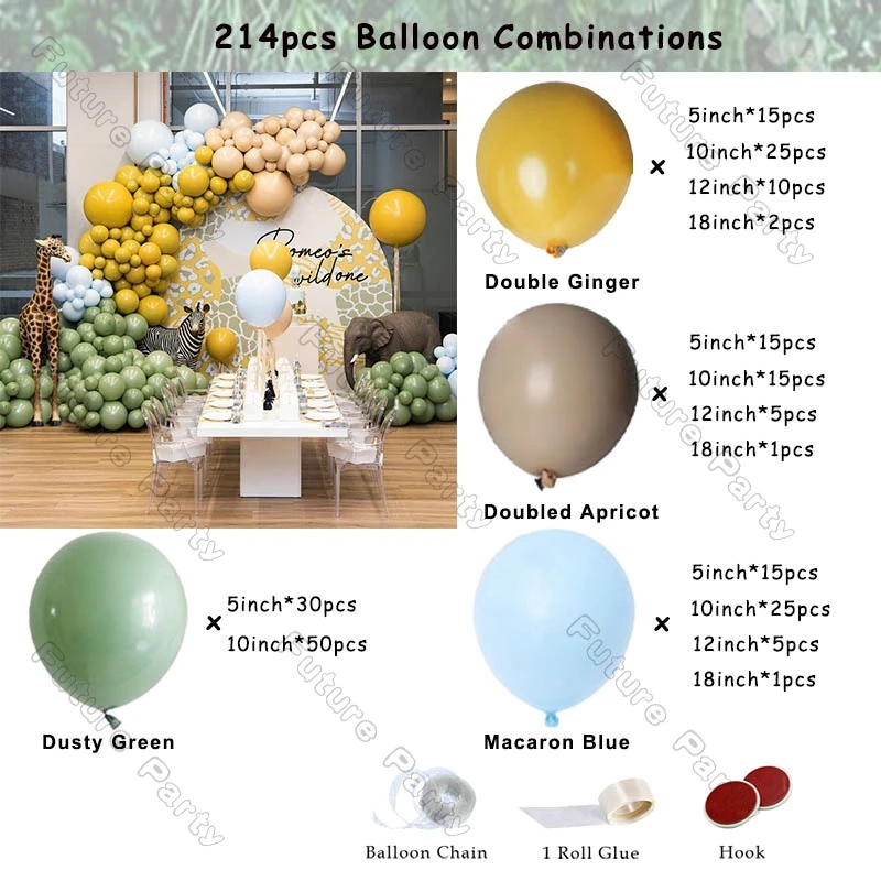 214 шт. двойной имбирный шар, гирлянда для свадьбы, дня рождения, вечеринки, украшения, пыльные зеленые маки, синие шарики, АРКА, детский Декор для душа