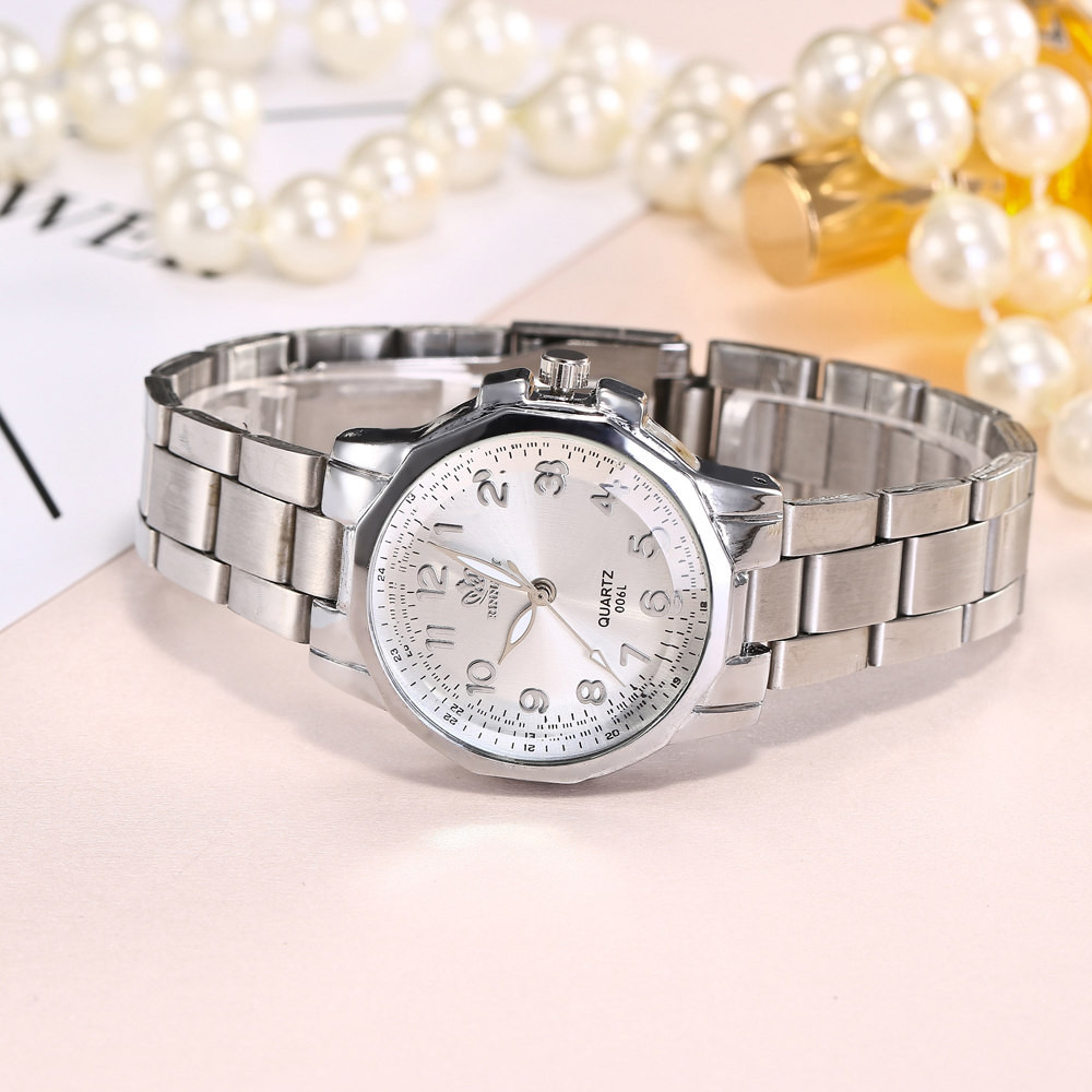 Женские Модные Аналоговые кварцевые круглые наручные часы из нержавеющей стали