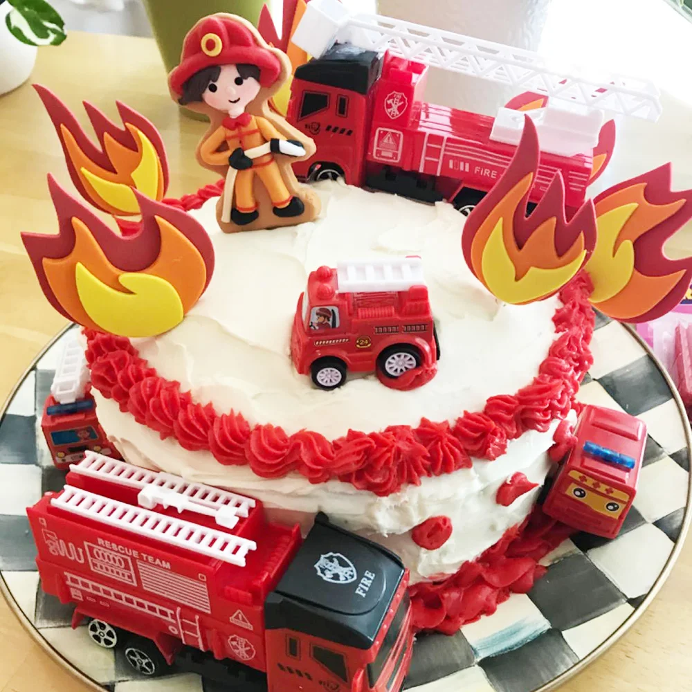Пожарный день рождения торт украшения пожарная машина пожарный отдел Топпер пожарный день рождения партии поставки дети мальчик украшения