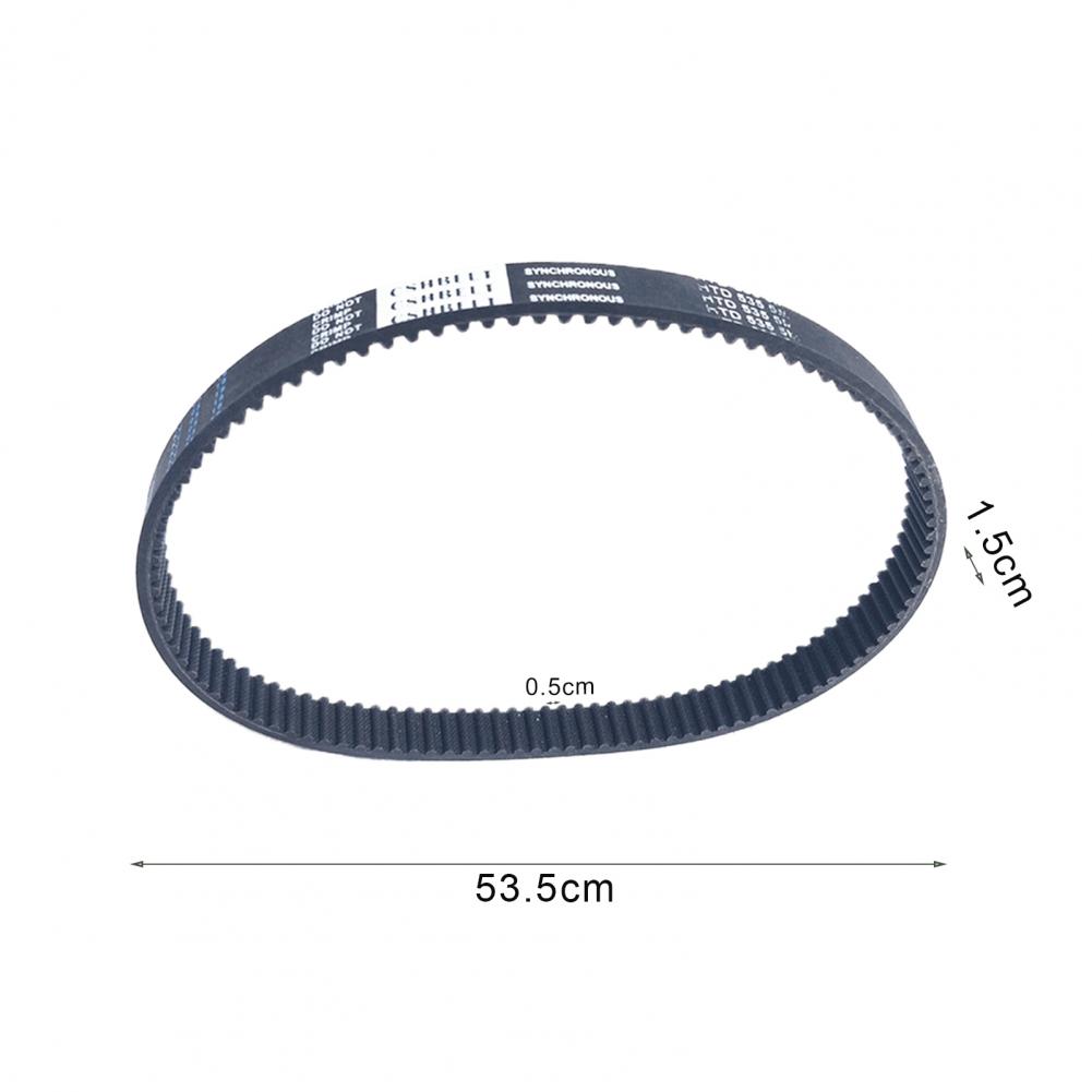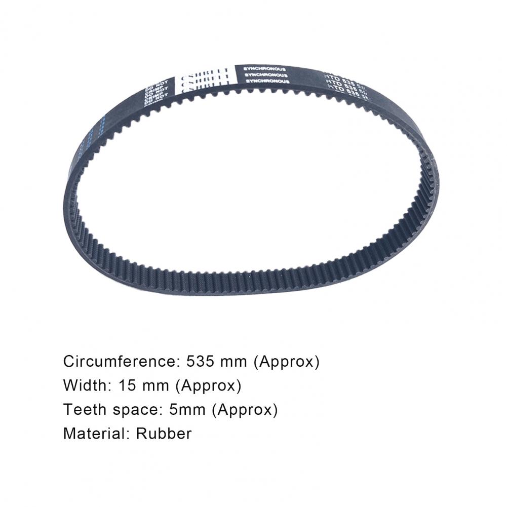 The timing belt circumference is 535mm, width is 15mm and teeth space is 5mm.