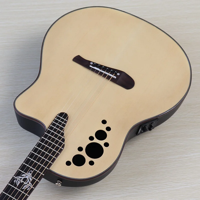 Ламинированная ель деревянная электрическая акустическая гитара 6 струн круглая задняя Овация модель 41 дюймов Cutaway дизайн народная гитара