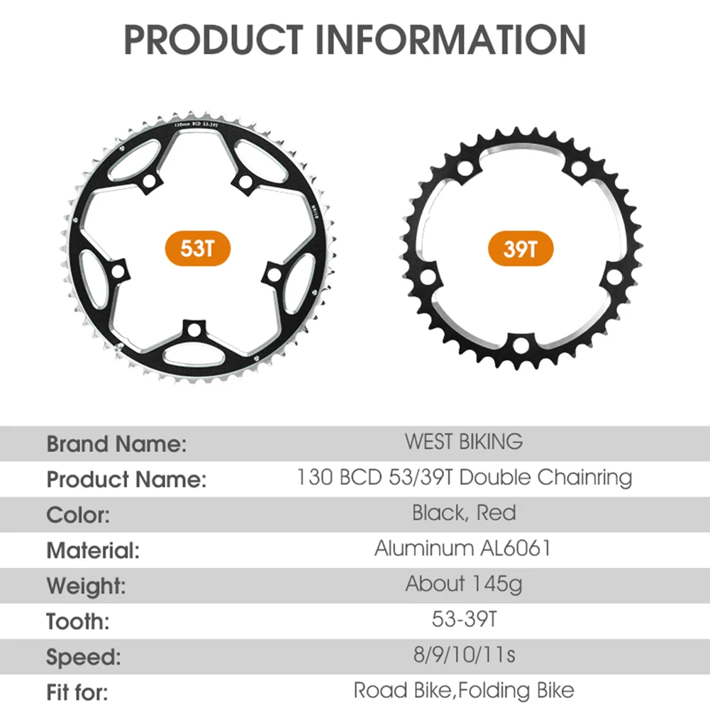 WEST BIKING 39T-53T CNC дорожная велосипедная цепная Звездочка 130BCD из алюминиевого сплава велосипедная кривошипная цепь колесные велосипедные детали аксессуары