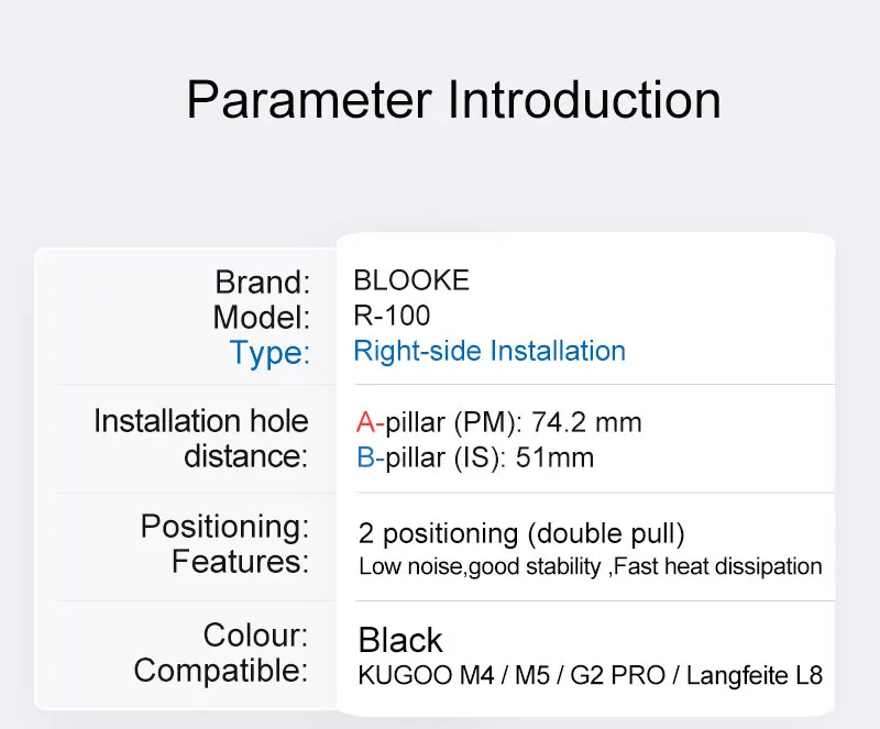 【Установка Расстояние между отверстиями】: A-столб (PM): 74 мм