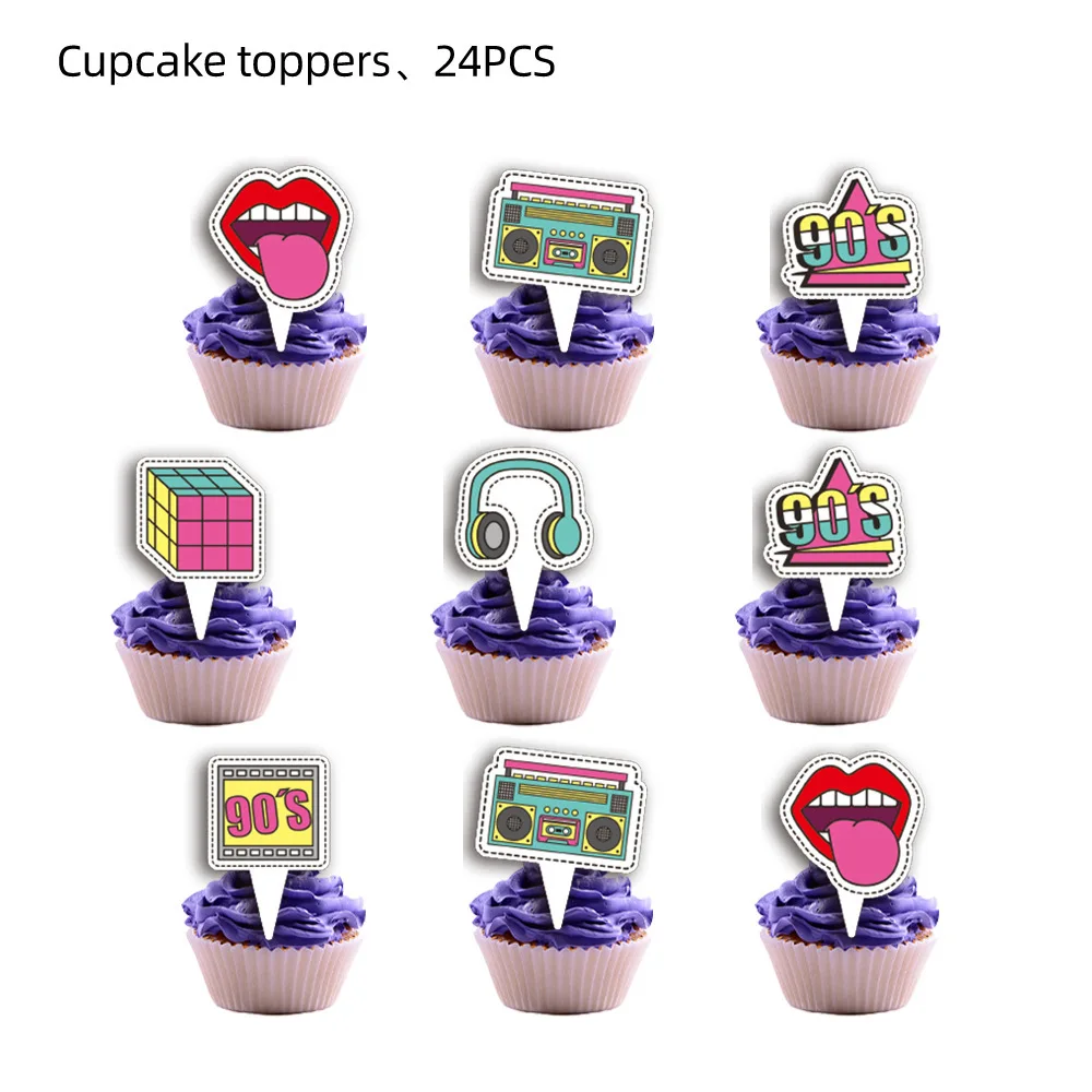 Ретро топперы для кексов, 80s, 90s, тематическая вечеринка на день рождения, Декорации для тортов, радио, бумбокс, Топпер для кексов, 10 лет, сувениры для вечеринок