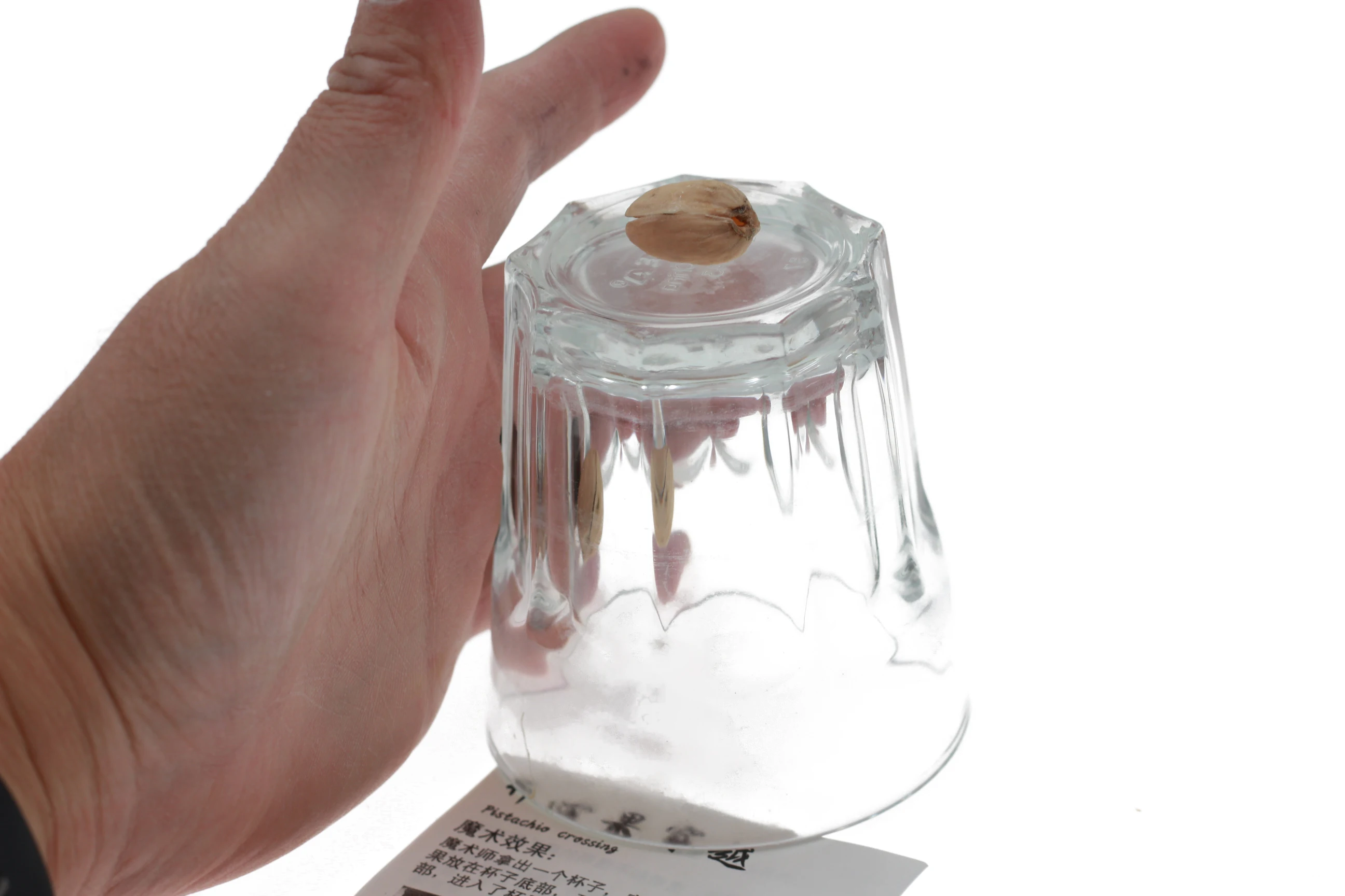 Волшебник берет фисташковую гайку и делает ее проникающей через основание стекла, а затем проходит через основание 2 очков.