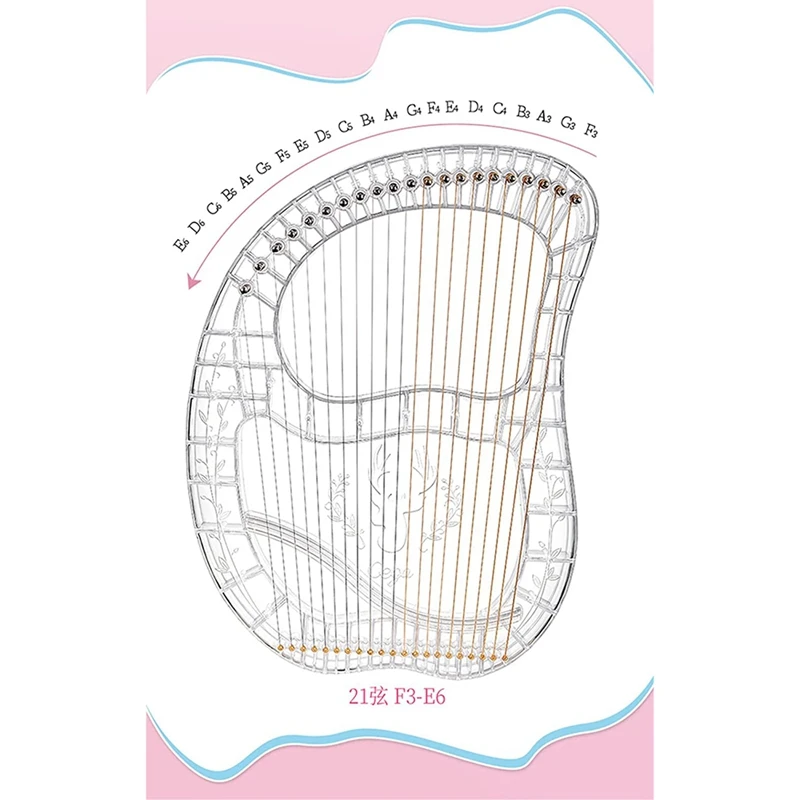 21 стальная нить: 21 металлическая пряжа, арфа оснащена прочными стальными струнами. Тон звонит и может заполнить всю комнату. Чем короче нить, тем выше тон. А также натяжение струн. Лучший подарок для детей, взрослых, начинающих, милых, друзей, профессионалов и лент.