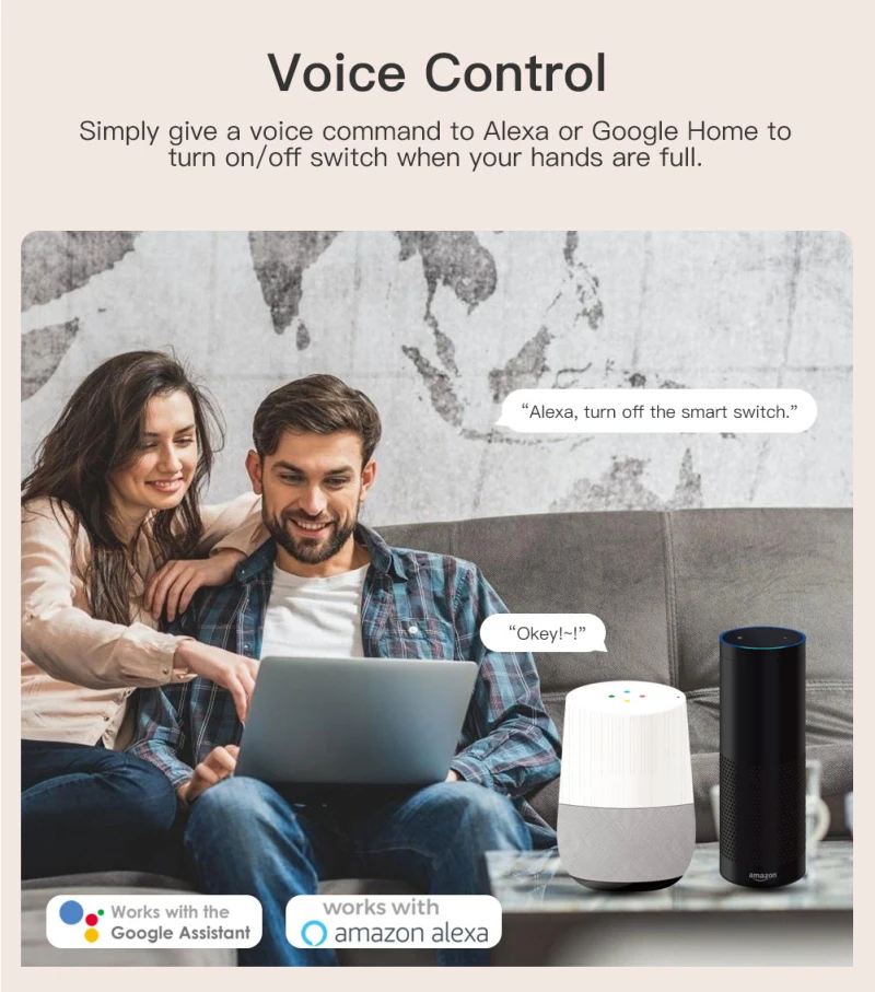 Поддержка голосовых помощников, таких как Tmall Genie, Alexa, GoolHome, и реализации функций, таких как переключатели; «Alexa, включите Кухонные светильники». Вы можете включить свет в одном предложении и наслаждаться удобной умной жизнью.