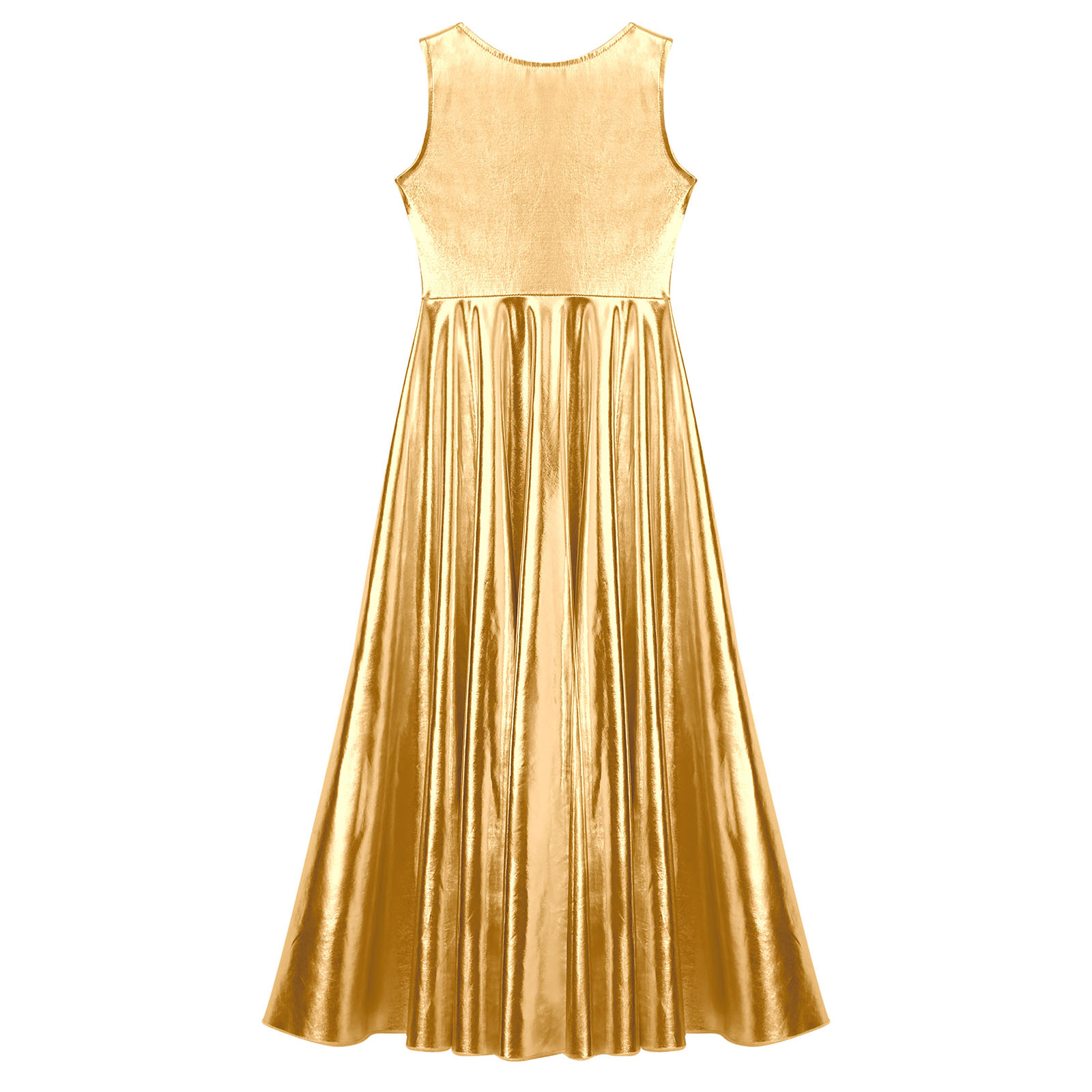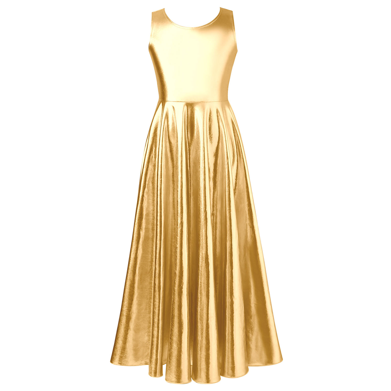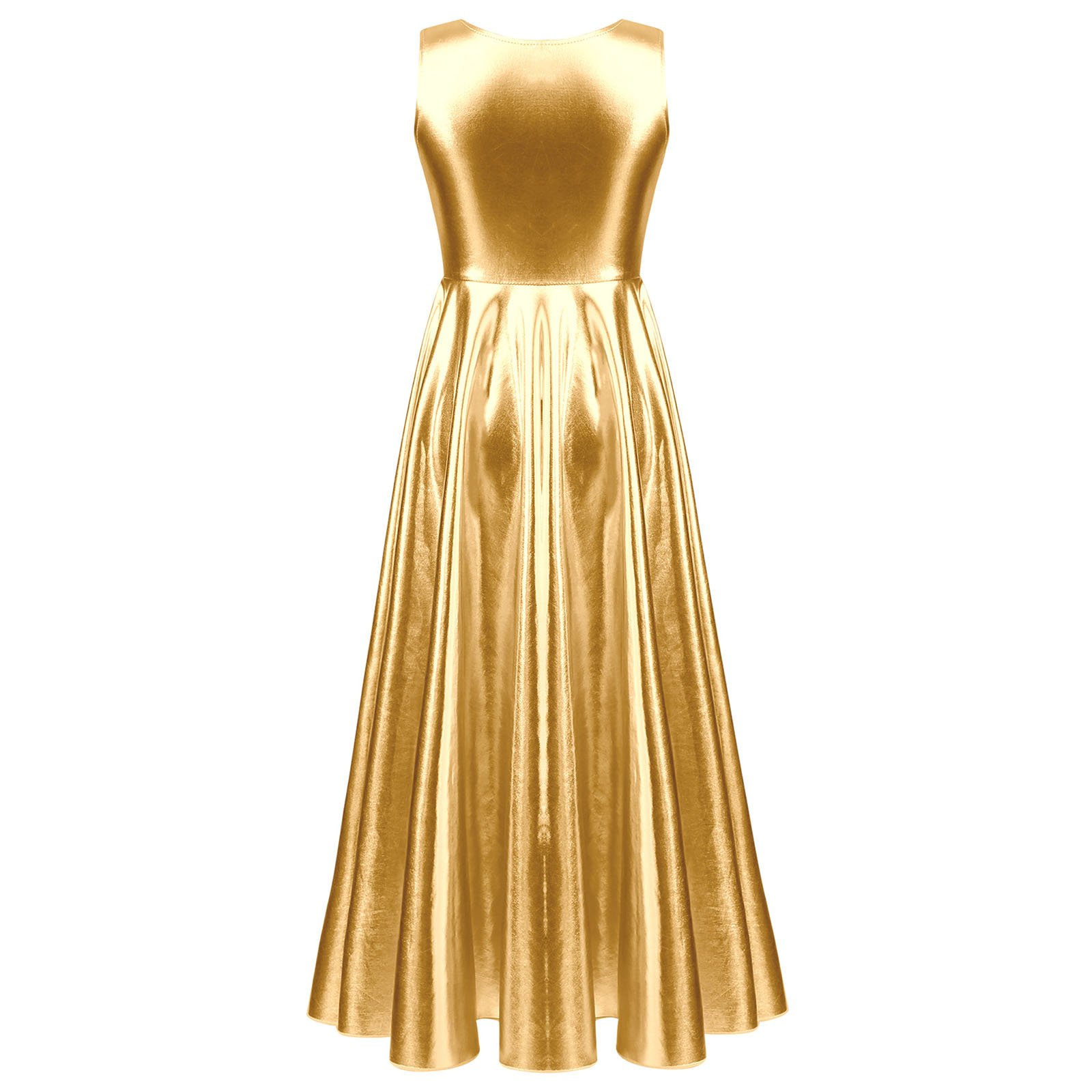 Платье с круглым вырезом и без рукавов; Блестящая бронзовая ткань; Уникальный дизайн.